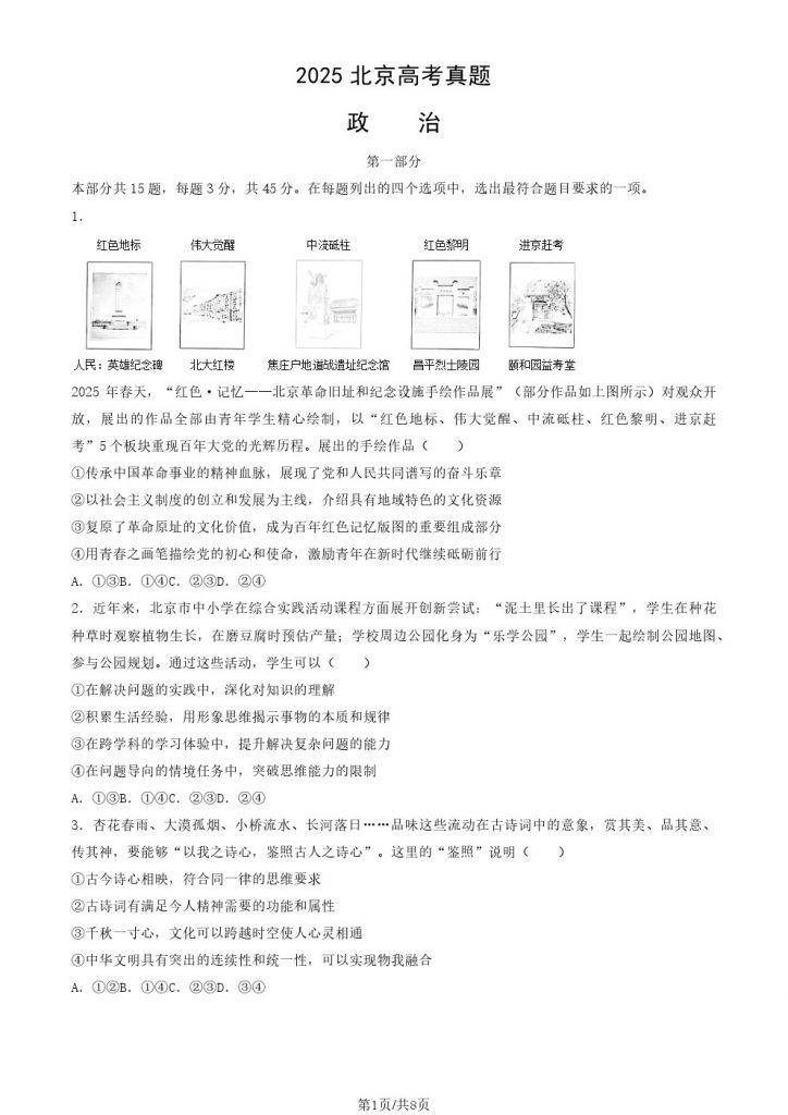 2025北京高考政治真题 //m.cfjuqp.com/gaokao/72211.html Tue, 17 Jun 2025 01:19:52 +0000 //m.cfjuqp.com/gaokao/?p=72211 2025年全国各省市高考考试已结束,北达教研组整理了2025北京高考政治真题及答案,详情如下: