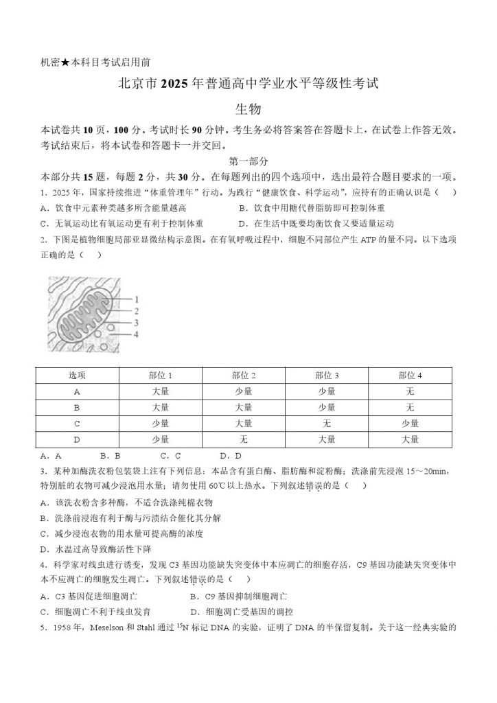 2025年北京生物高考真题 //m.cfjuqp.com/gaokao/72235.html Wed, 18 Jun 2025 01:42:32 +0000 //m.cfjuqp.com/gaokao/?p=72235 2025年全国各省市高考考试已结束,北达教研组整理了2025年北京生物高考真题,详情如下: