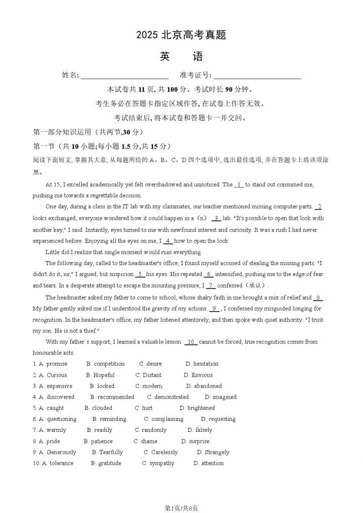 2025年北京高考英语真题 //m.cfjuqp.com/gaokao/72260.html Thu, 19 Jun 2025 01:35:55 +0000 //m.cfjuqp.com/gaokao/?p=72260 2025年全国各省市高考考试已结束,北达教研组整理了2025年北京高考英语真题,详情如下: