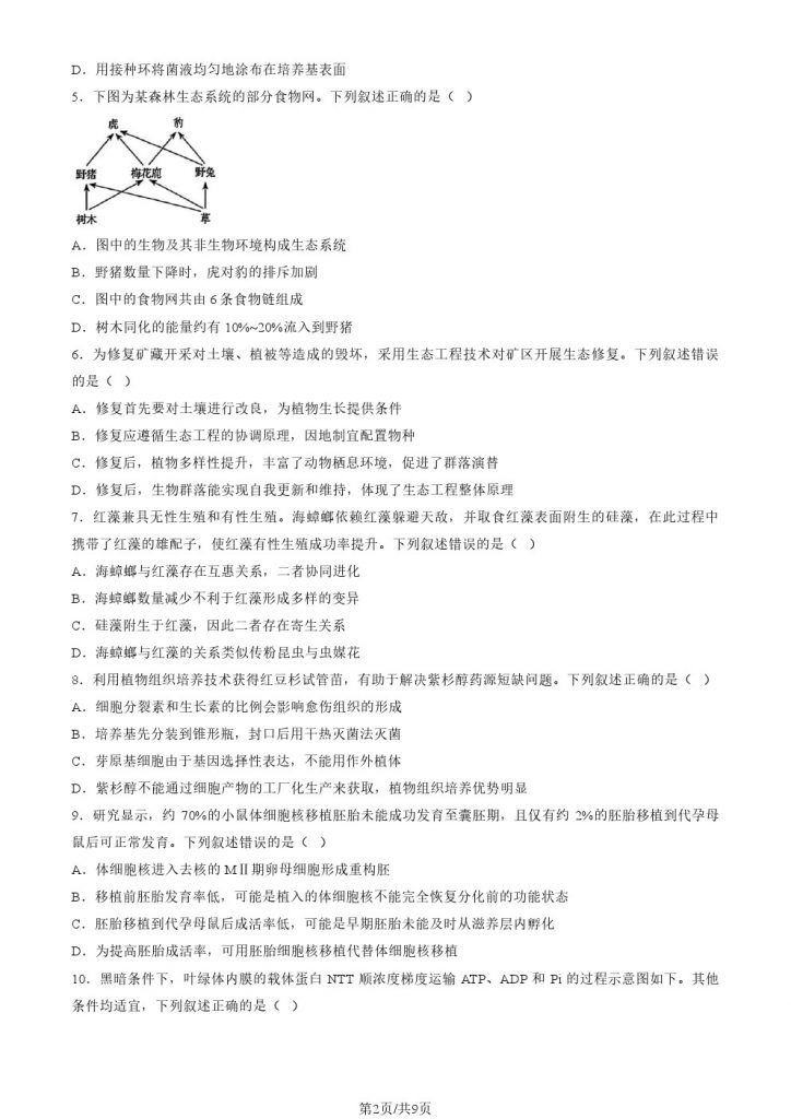 2025黑龙江、吉林、辽宁、内蒙古高考真题生物试题