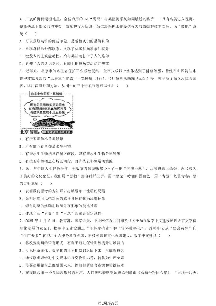 2025黑龙江、吉林、辽宁、内蒙古高考真题政治试题及答案