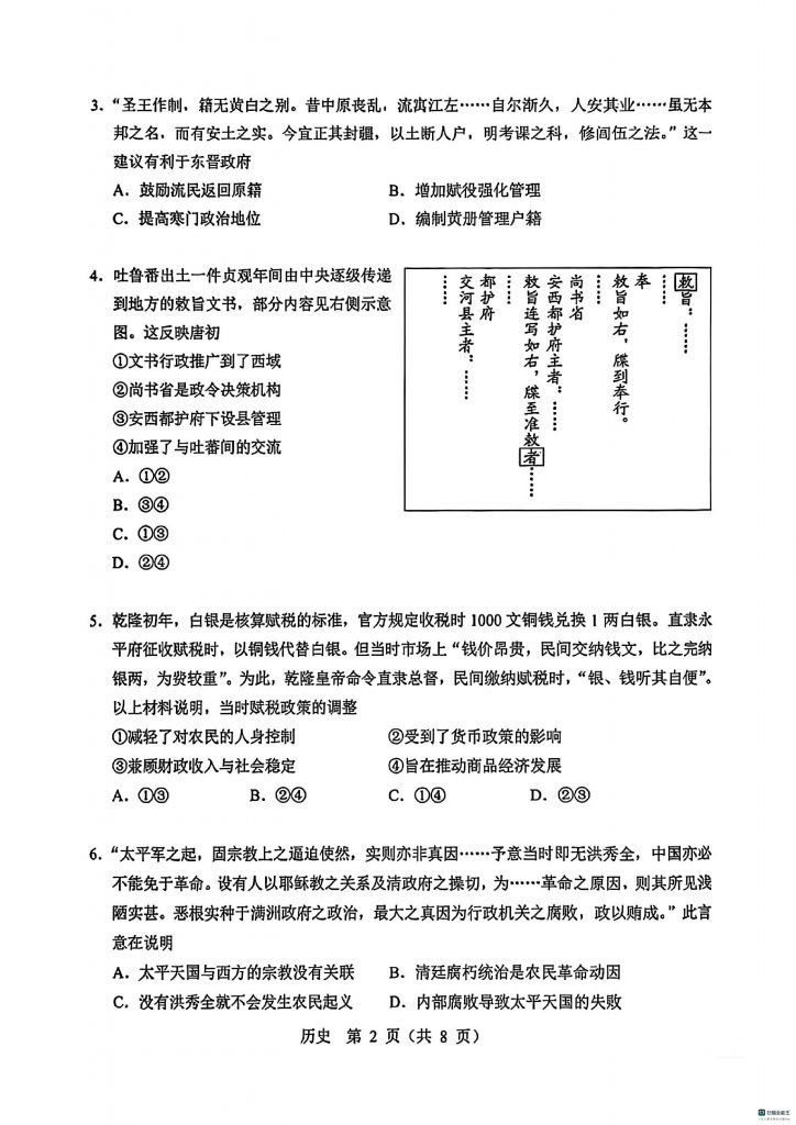 2025黑龙江、吉林、辽宁、内蒙古高考真题历史试题及答案