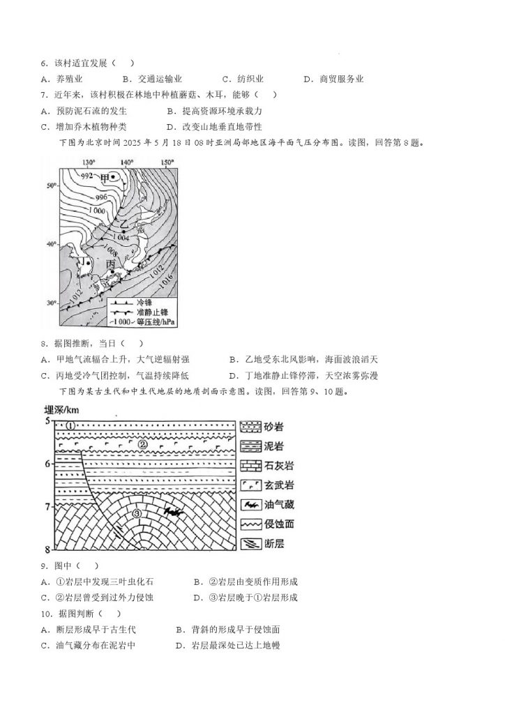 2025黑龙江、吉林、辽宁、内蒙高考真题地理试题及答案