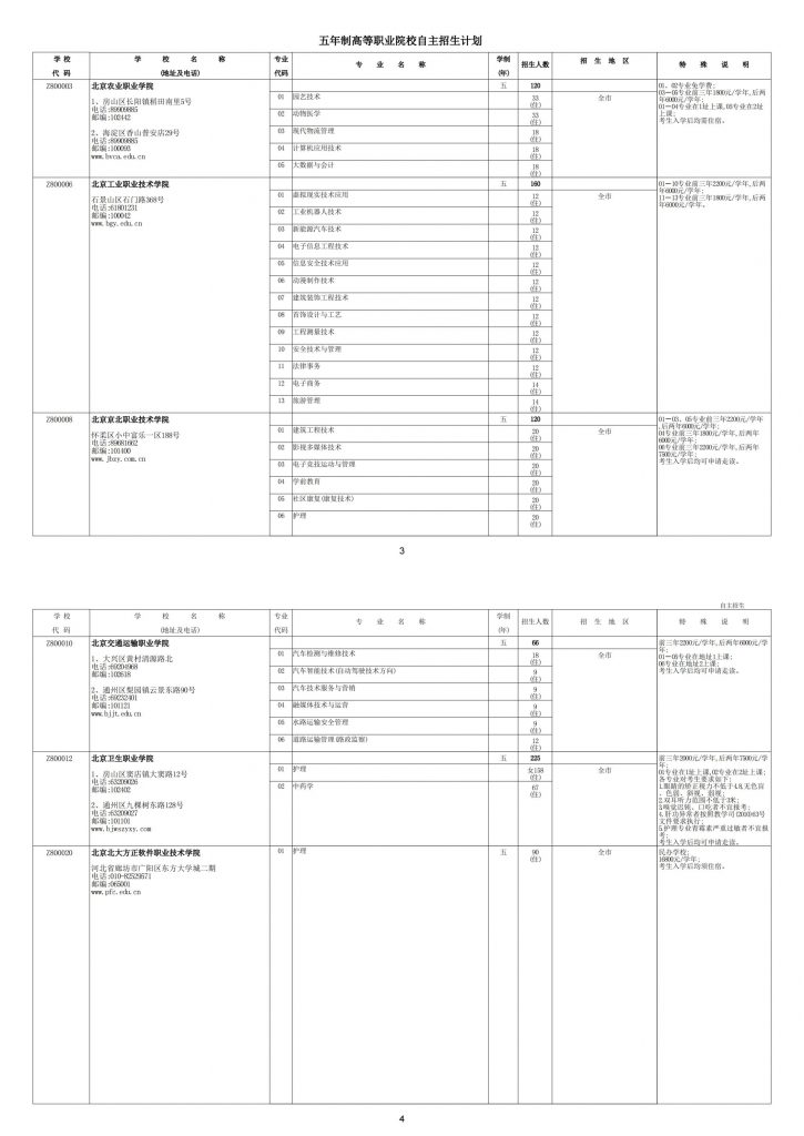 北京市2022年五年制高等职业院校自主招生计划出炉,都是哪些学校进行招生?各校招生计划是多少?