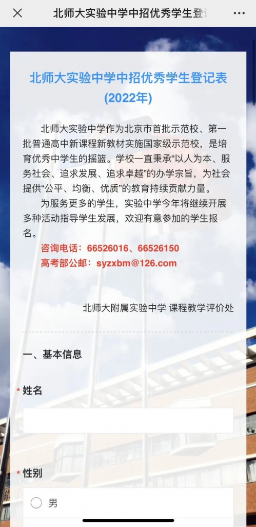 2022年北师大实验中招信息采集通道开启,想报考北师大实验的优秀学子可以来报名啦。
