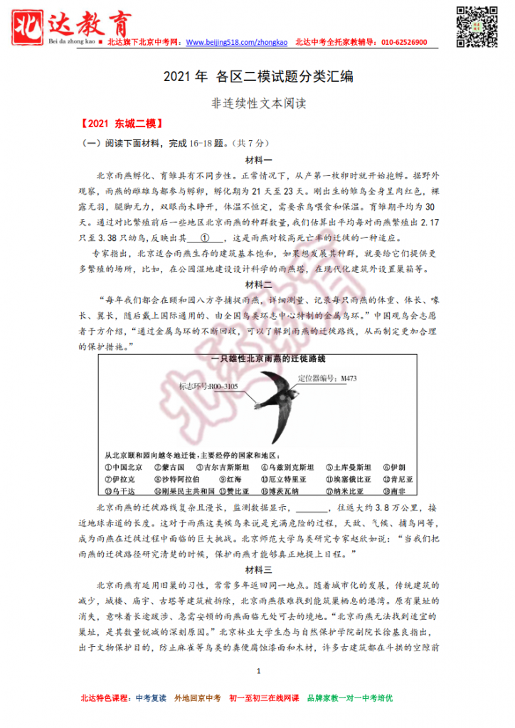 北京各区2021中考二模语文试题分类汇编(含答案)。北达中考复读学校教研组收集整理,分享给大家。