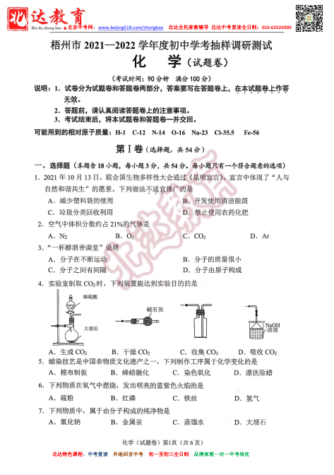 2022年广西梧州市中考一模试题及答案汇总(高清版)。北达教研组收集整理,分享给大家。