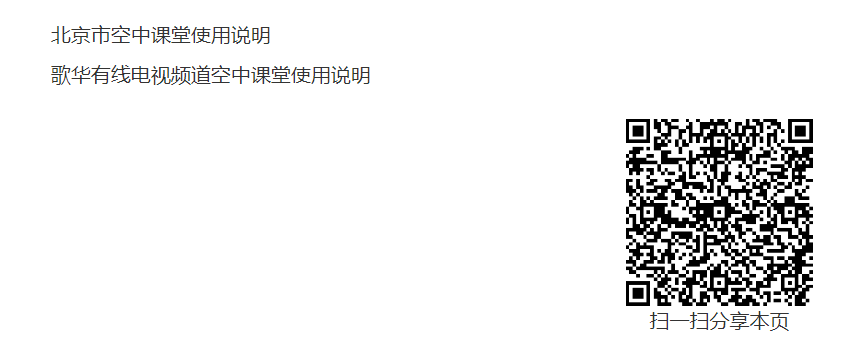 2.市级将在“北京市空中课堂”和“京学通”提供课程资源点播和直播服务。歌华有线12个空中课堂电视频道(频道号为501-512)同步提供课程点播和直播,使用说明见附件。