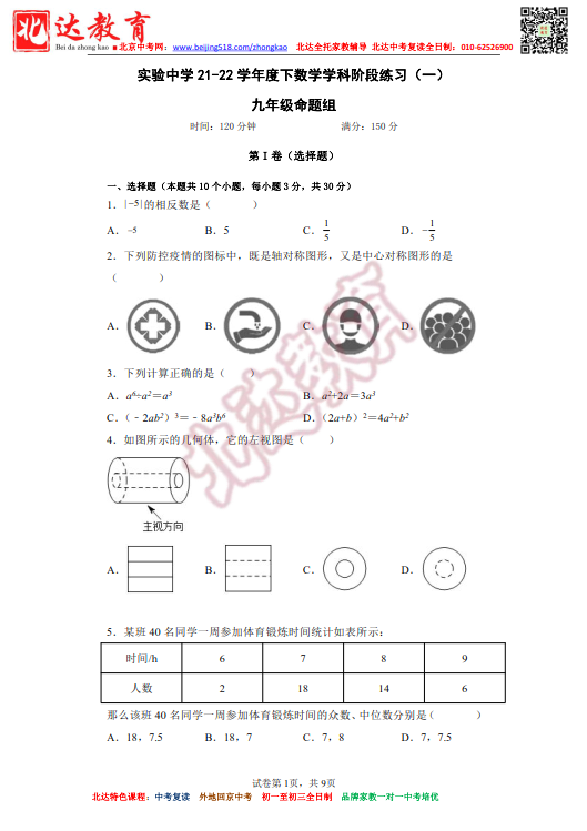 2022年辽宁省葫芦岛市实验中学中考一模试题及答案汇总。北达教研组收集整理,分享给大家。