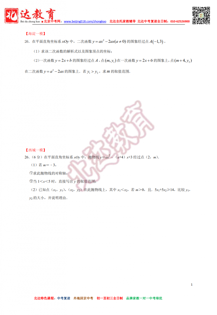 2022北京初三一模数学分类汇编(高清增强版)。北达中考复读学校教研组收集整理,分享给大家。