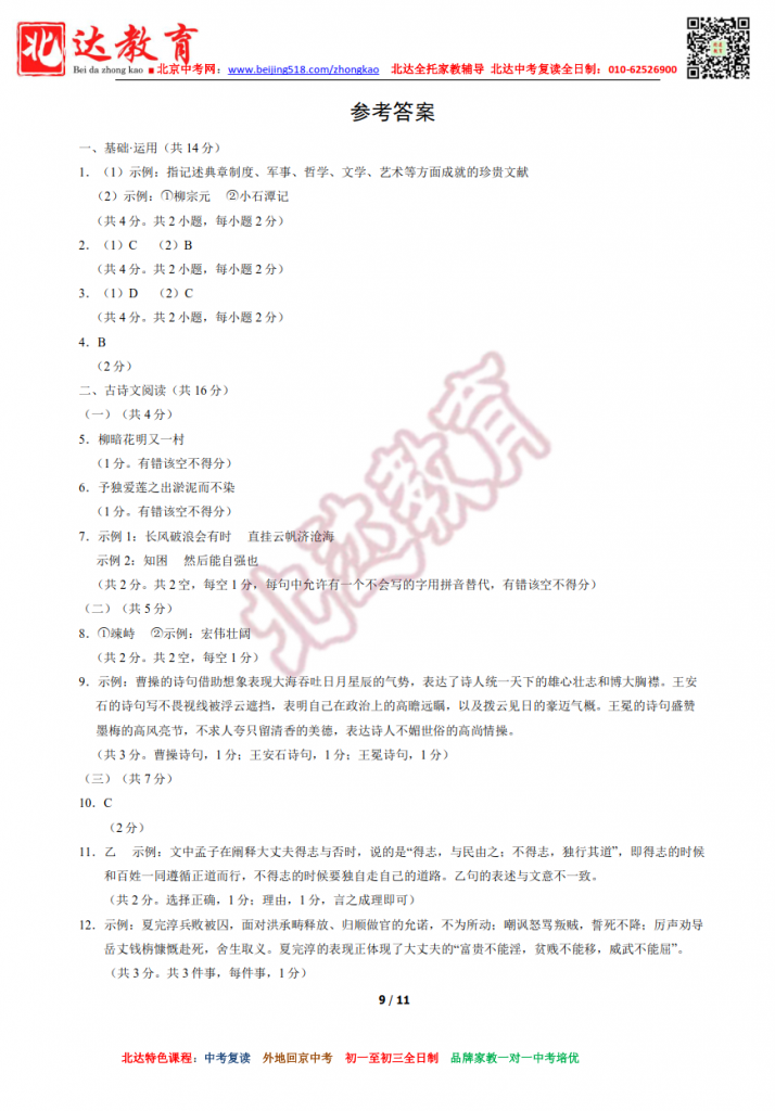 北京海淀2022初三二模语文试题及答案(高清版)!北达中考复读学校教研组收集整理,分享给大家。