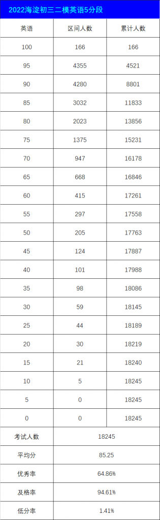 多少分能考上六小强?2022年海淀初三二模全科及单科5分段排名发布! 北达中考复读学校教研组收集整理,分享给大家。