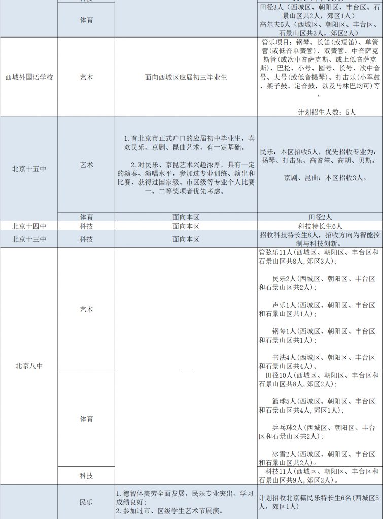 北京西城区2022中考特长生招生简章汇总公布!北达中考复读学校教研组收集整理,分享给大家。