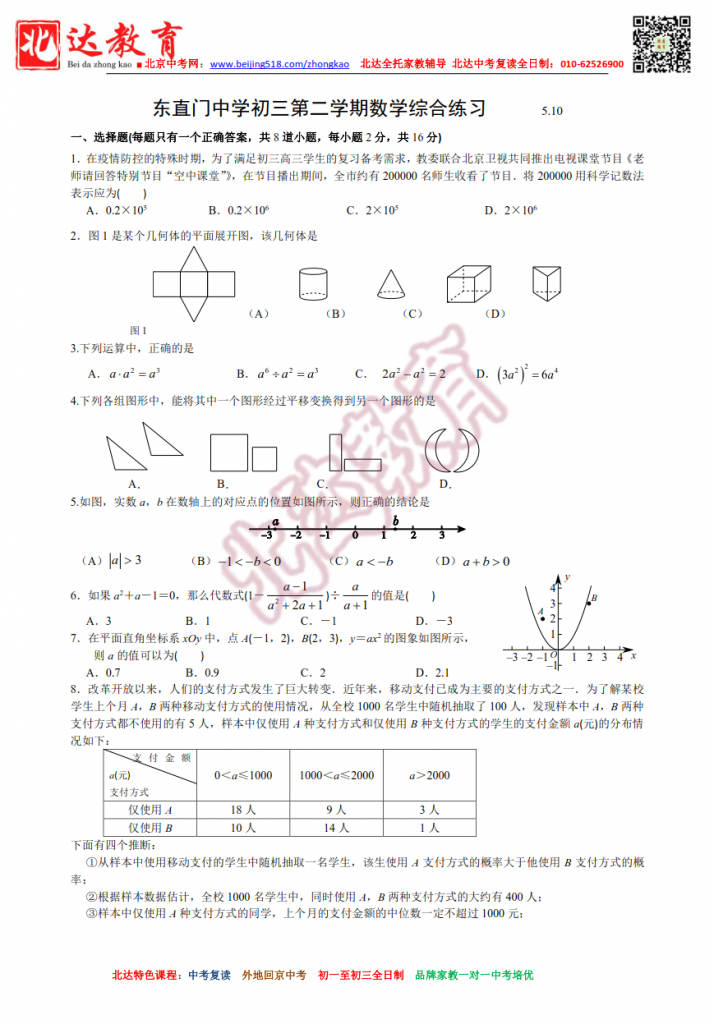 北京东直门中学2022初三下数学综合练习(高清版)。北达中考复读学校教研组收集整理,分享给大家。