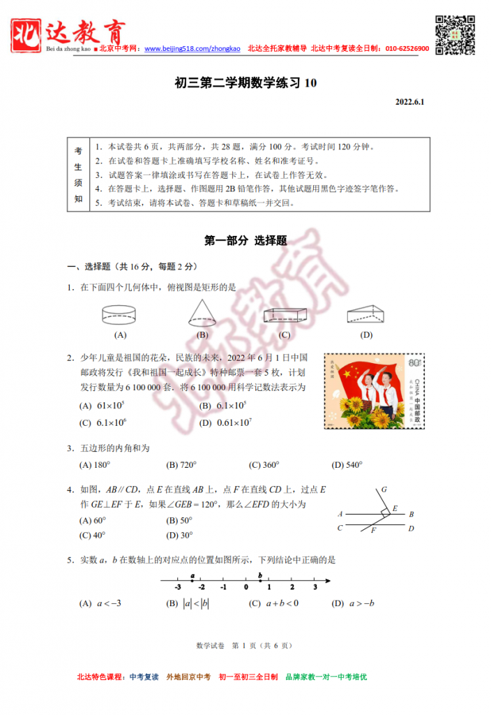 北京人大附中2022初三下数学练习10试题及答案(高清版)。北达中考复读学校教研组收集整理,分享给大家。