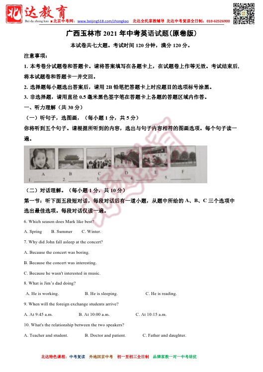 2021年广西中考英语试题及答案汇总。北达教研组收集整理,分享给大家。