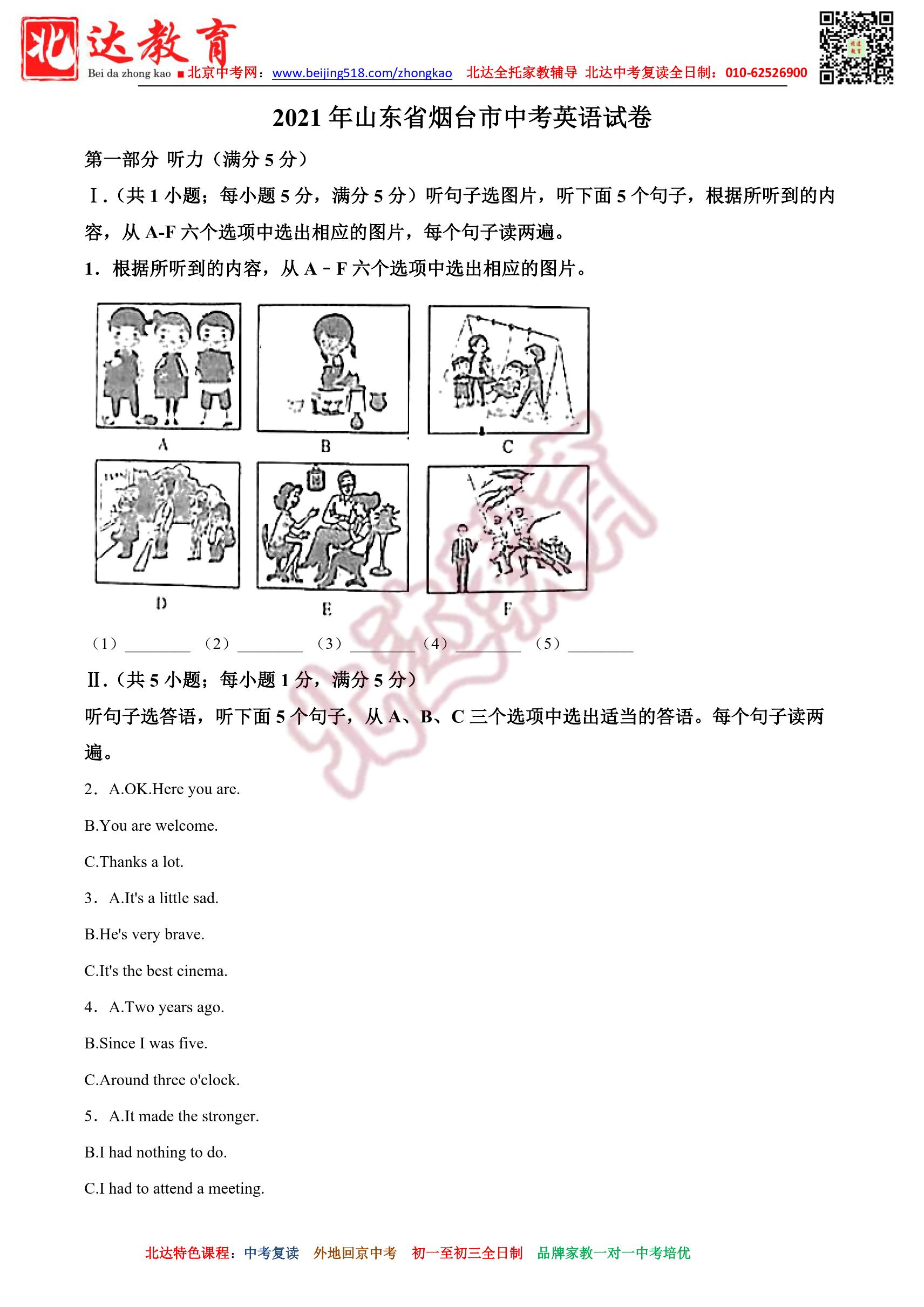 2021年山东中考英语试题及答案汇总。北达教研组收集整理,分享给大家。