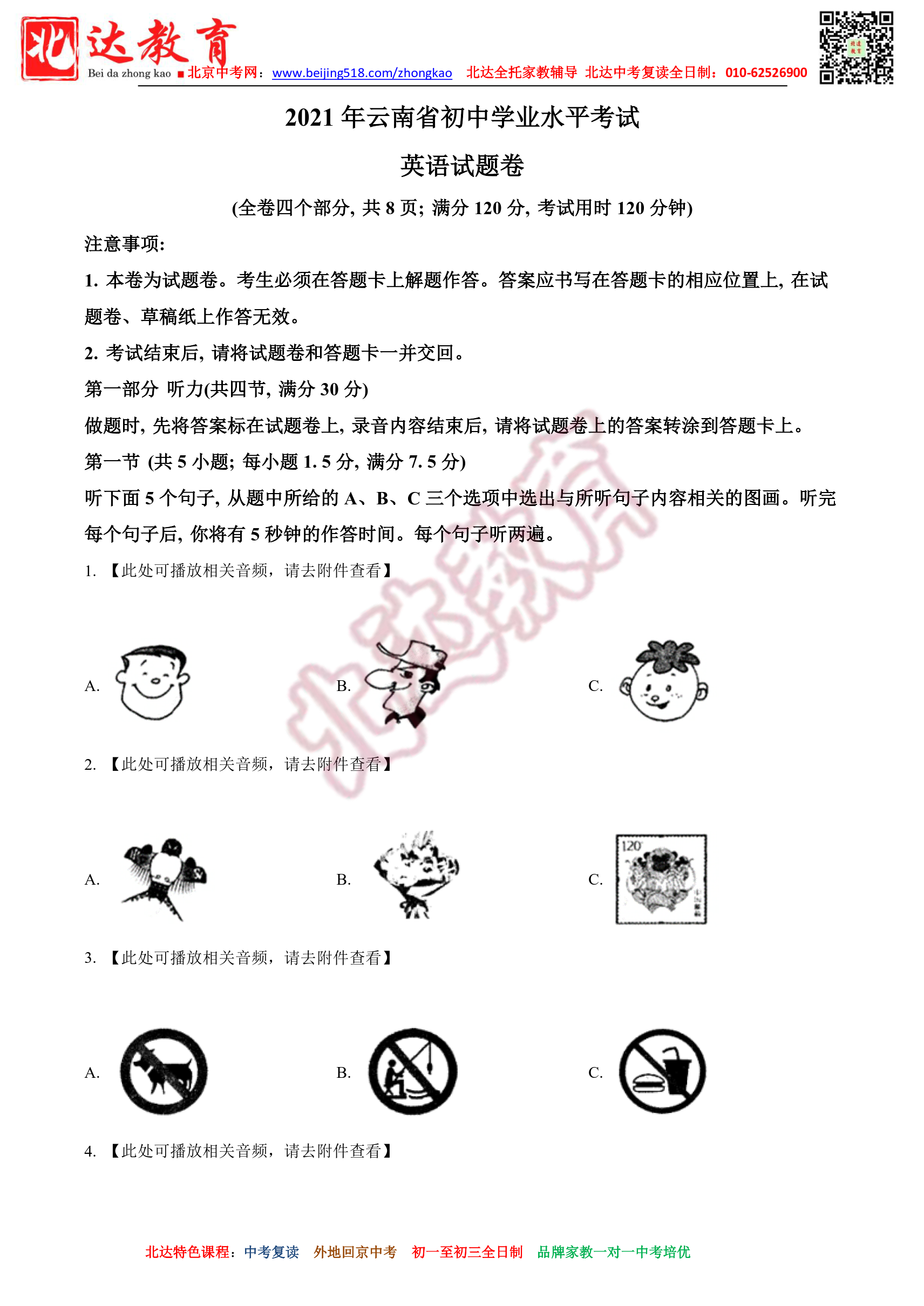 2021年云南中考英语试题及答案汇总。北达教研组收集整理,分享给大家。