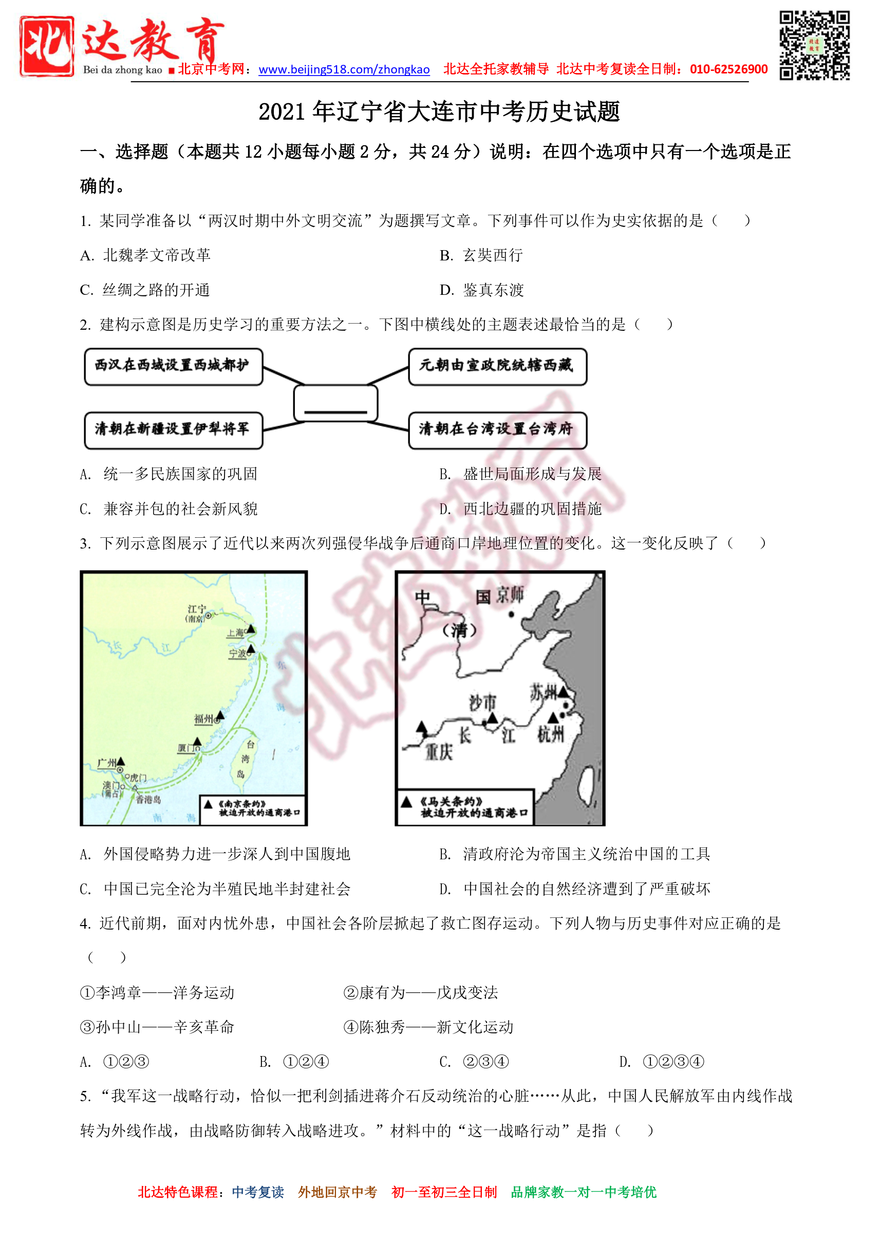 2021年辽宁中考历史试题及答案汇总。北达教研组收集整理,分享给大家。