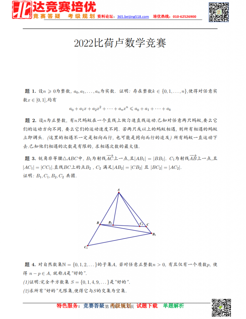 2022比荷卢数学竞赛-中英文版试题及答案(高清版)。北达中考复读学校教研组收集整理,分享给大家。