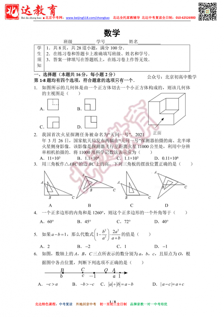 北京四中20220615中考数学2.5模拟试题及答案(高清版)。北达中考复读学校教研组收集整理,分享给大家。