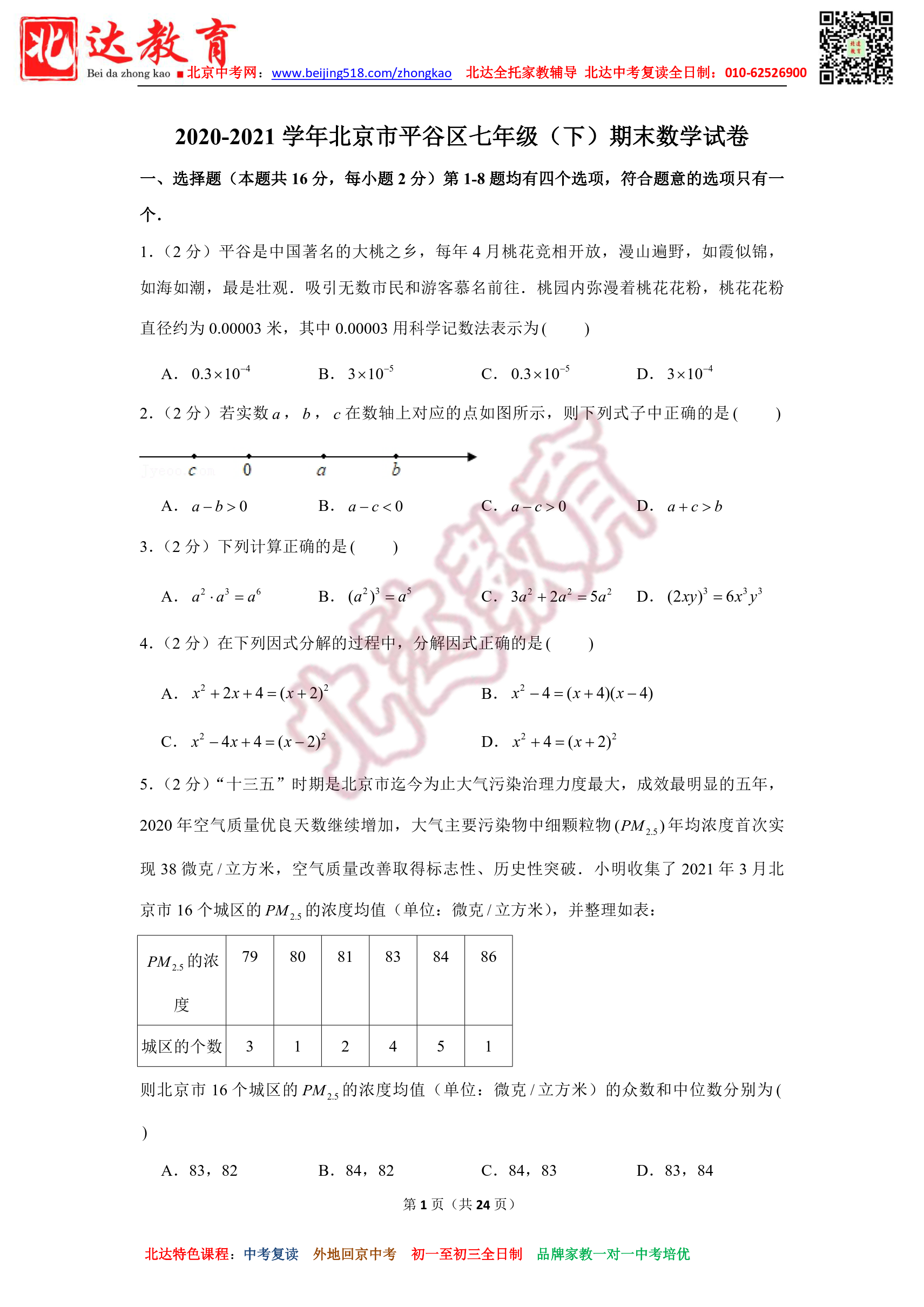 2007-2021年北京平谷七年级期末数学试题及答案汇总。北达教研组收集整理,分享给大家。