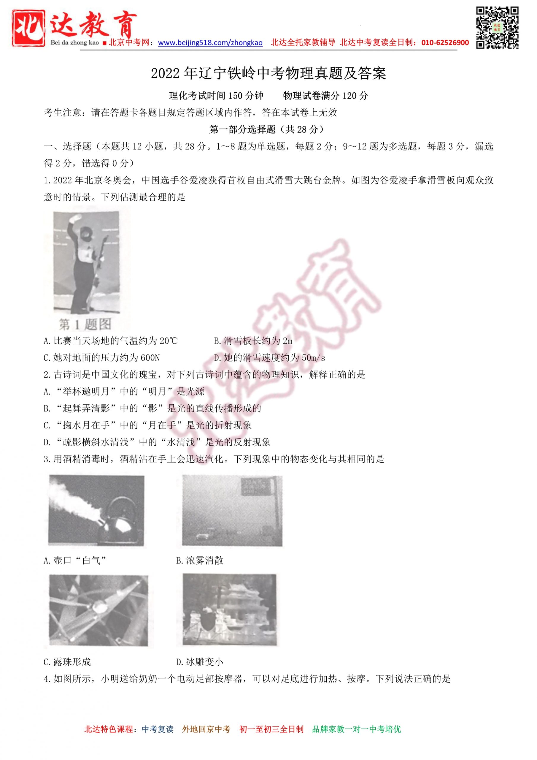 2022年辽宁省铁岭市中考试题及答案汇总。北达教研组收集整理,分享给大家。