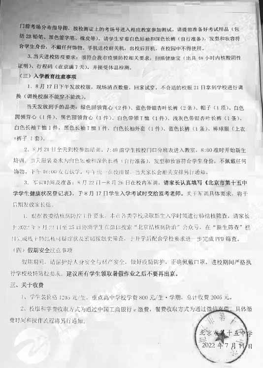 2022年北京十五中新高一入学安排!北京北达教研组整理分享相关信息,供大家参考。