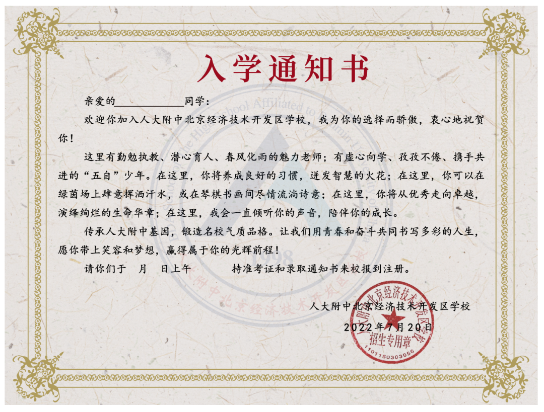 未来人大附中经开学校会继续坚持“成就每一位孩子”的办学理念,助力每一位有缘来到人大附中经开学校求学的学生收获精彩人生。相信来到人开的同学们,定能让青春在这里闪耀,梦想在这里放飞!