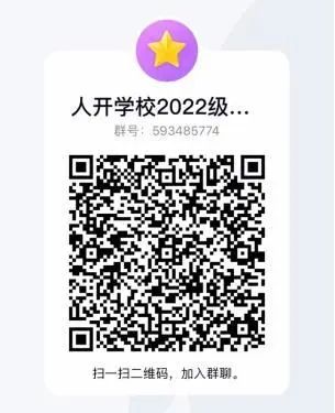 已被人开统招录取的同学,人开欢迎你的加入!请各位已成功被人开录取的同学通过添加QQ号码593485774,或通过扫描下方二维码进群,进行线上报到。进群时请务必备注学生本人姓名和初中毕业学校。进群报到截止时间为7月30日下午3:00。