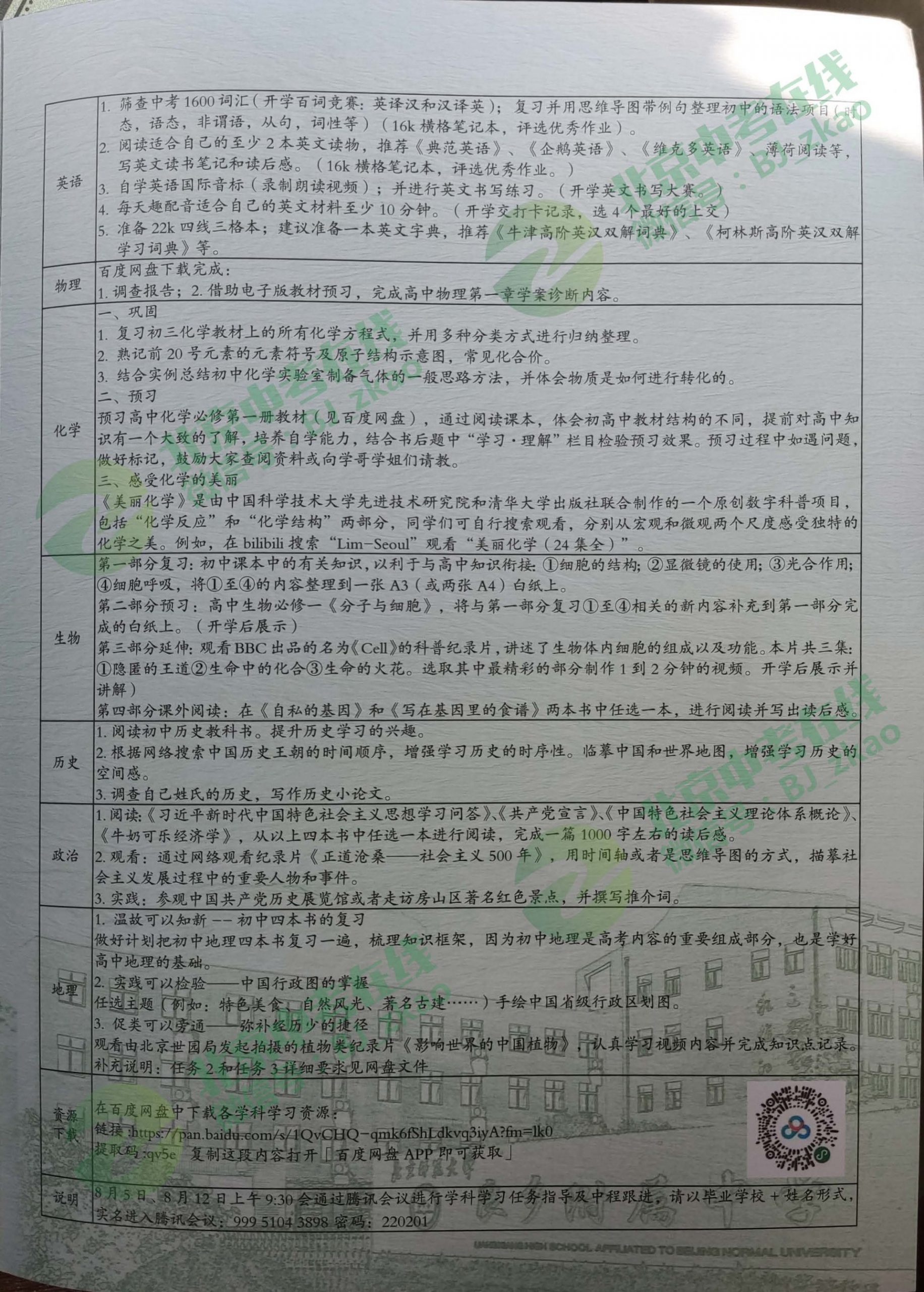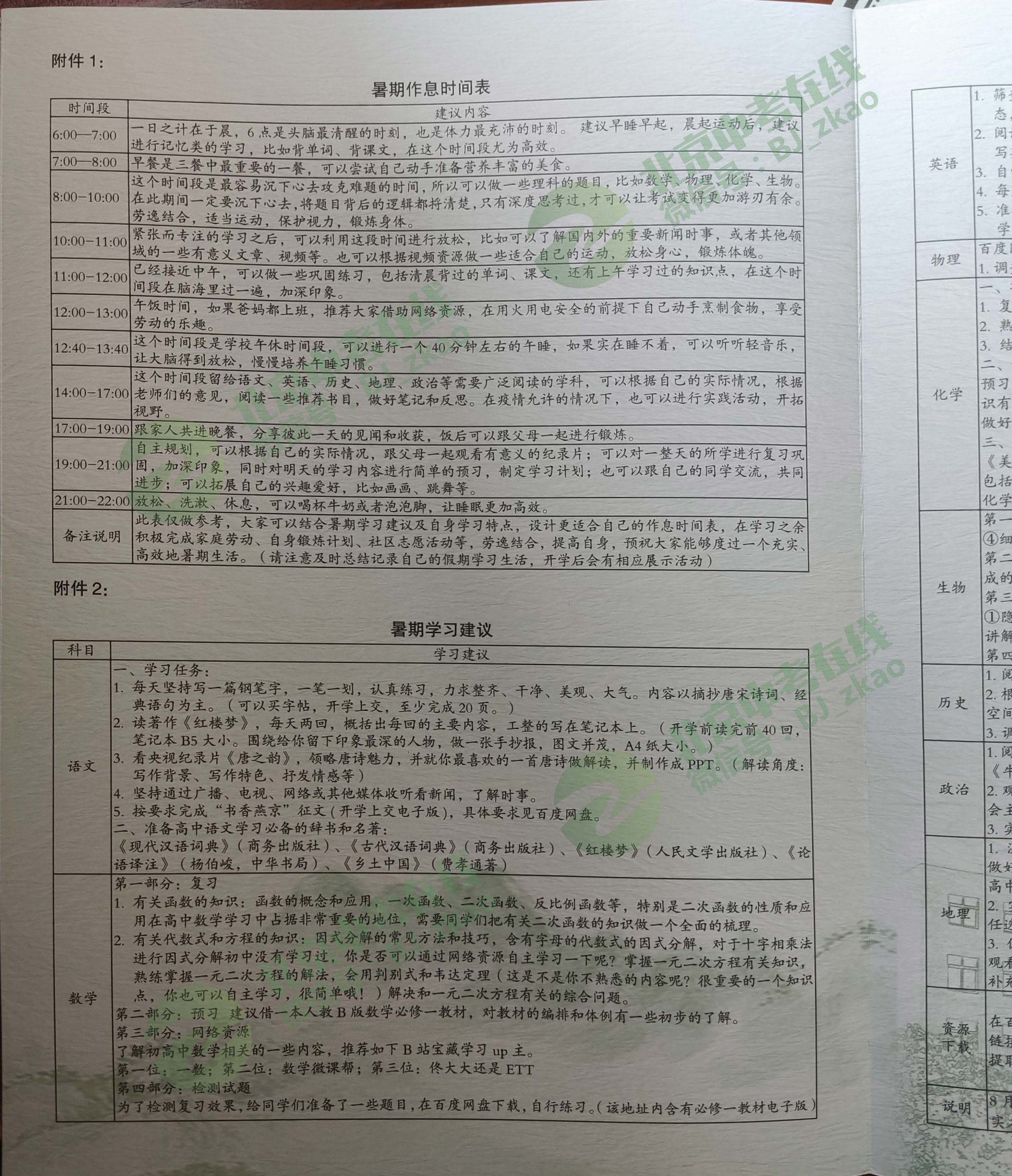 2022年良乡附中新高一暑假作业!北京北达教研组整理分享相关信息,供大家参考。