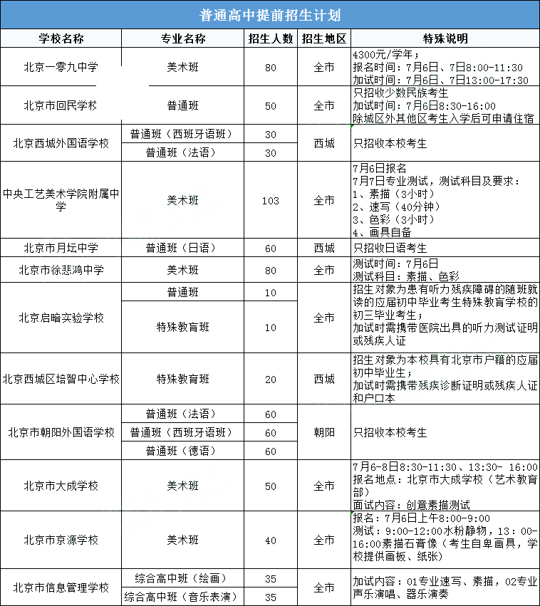 2、在提前招生批次,北京西城外国语学校和朝阳外国语学校仅招收本校考生。