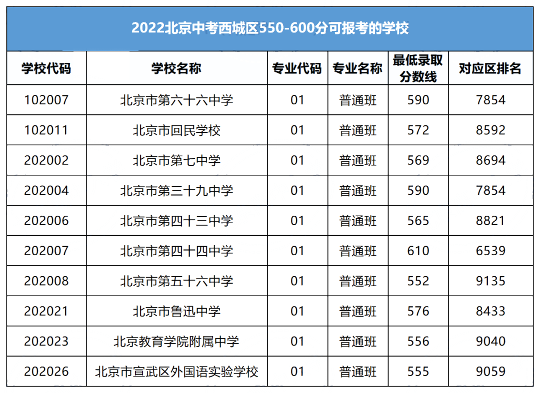 2022年北京西城区550-600分可报考的学校有哪些? 北京北达教研组整理分享相关信息,供大家参考。