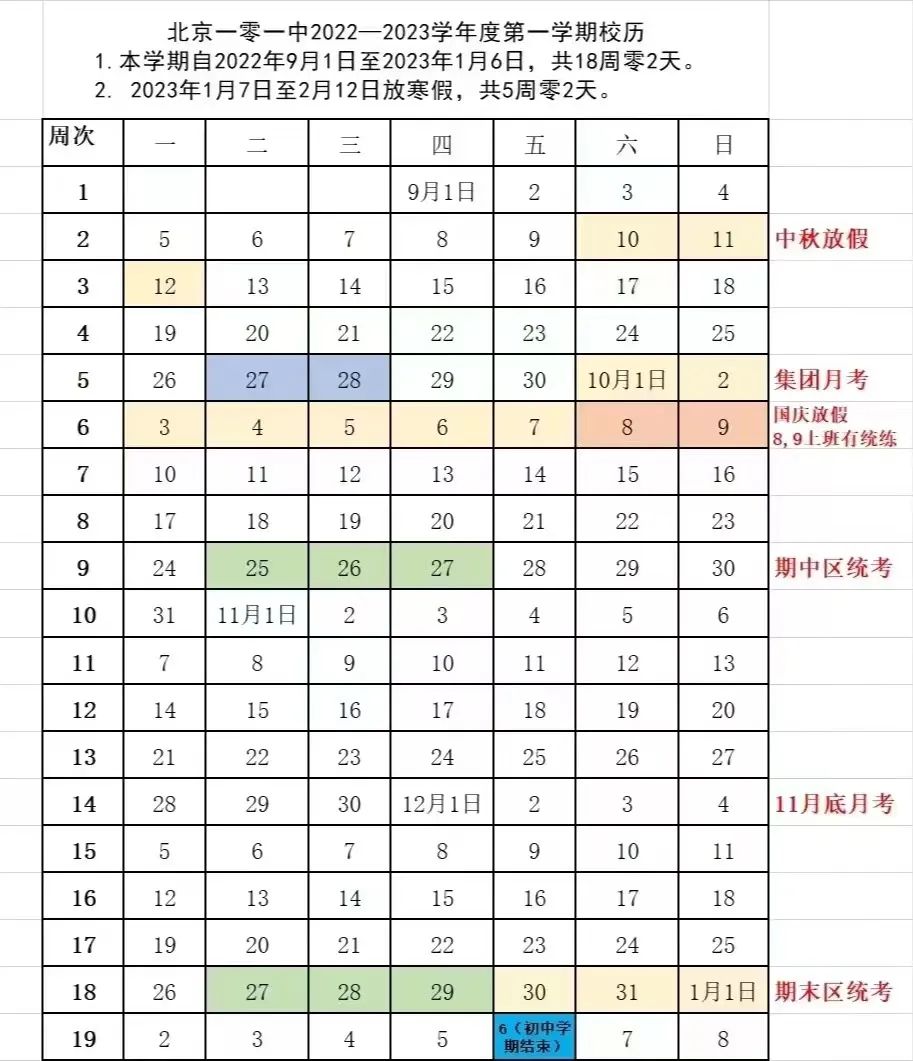 今天为大家搜集整理了北京一零一中学2020-2023学年第一学期校历安排,供大家参考。