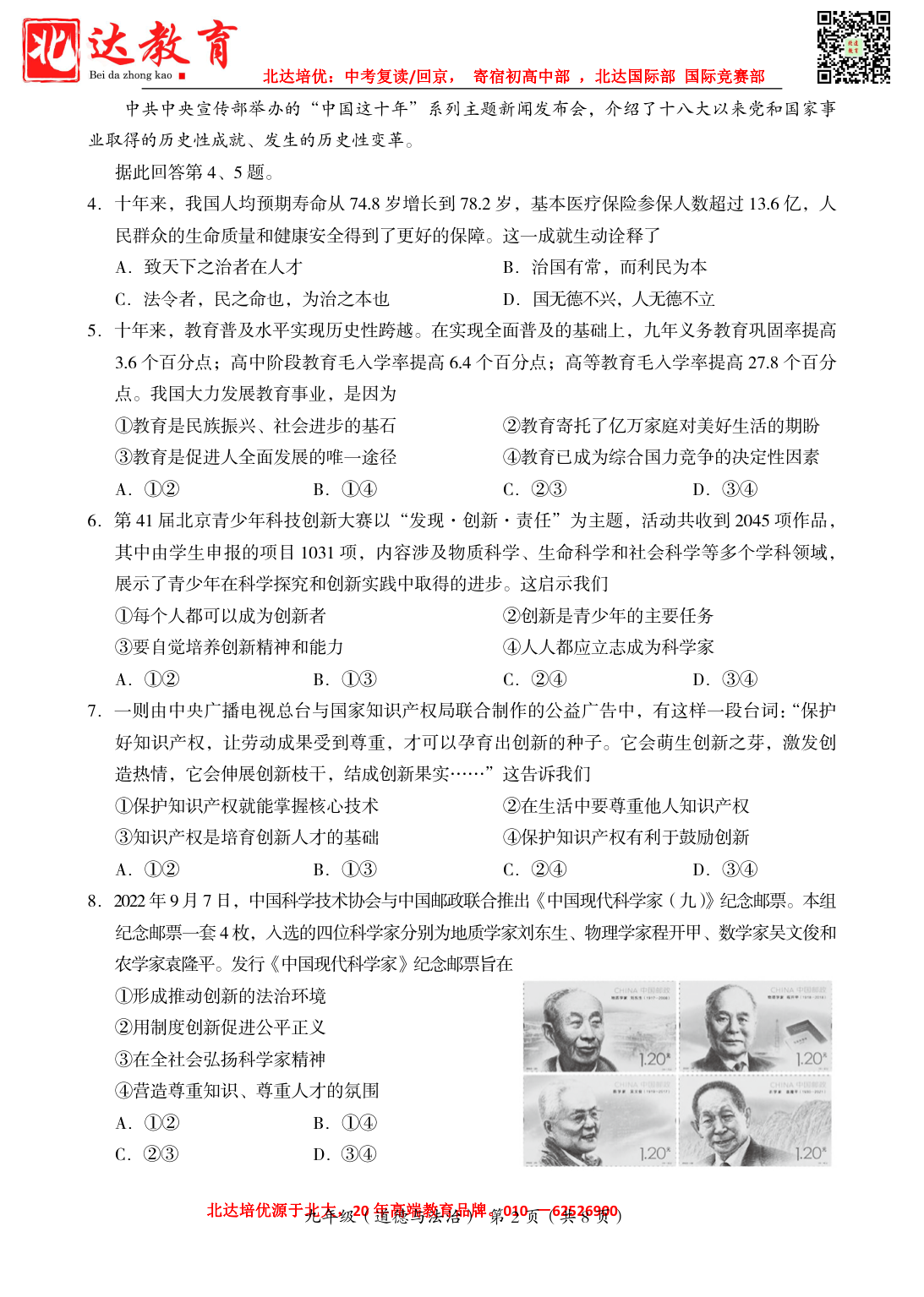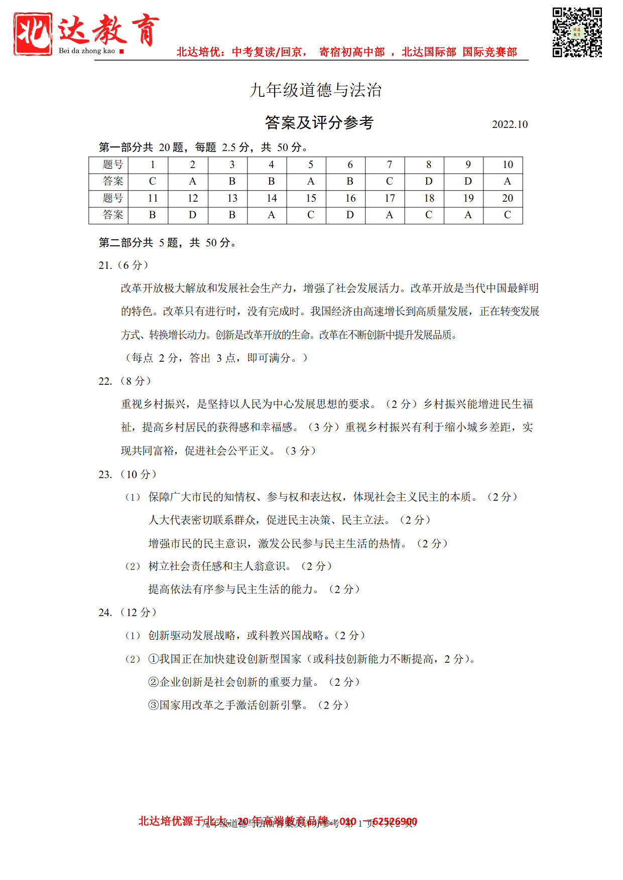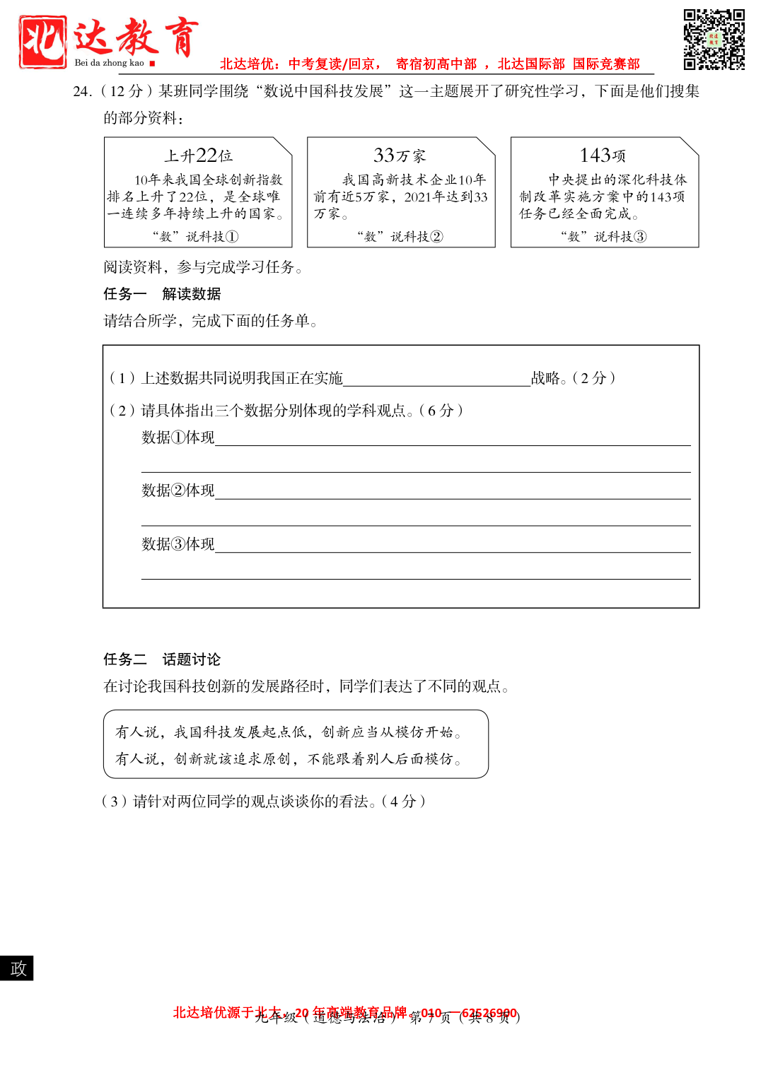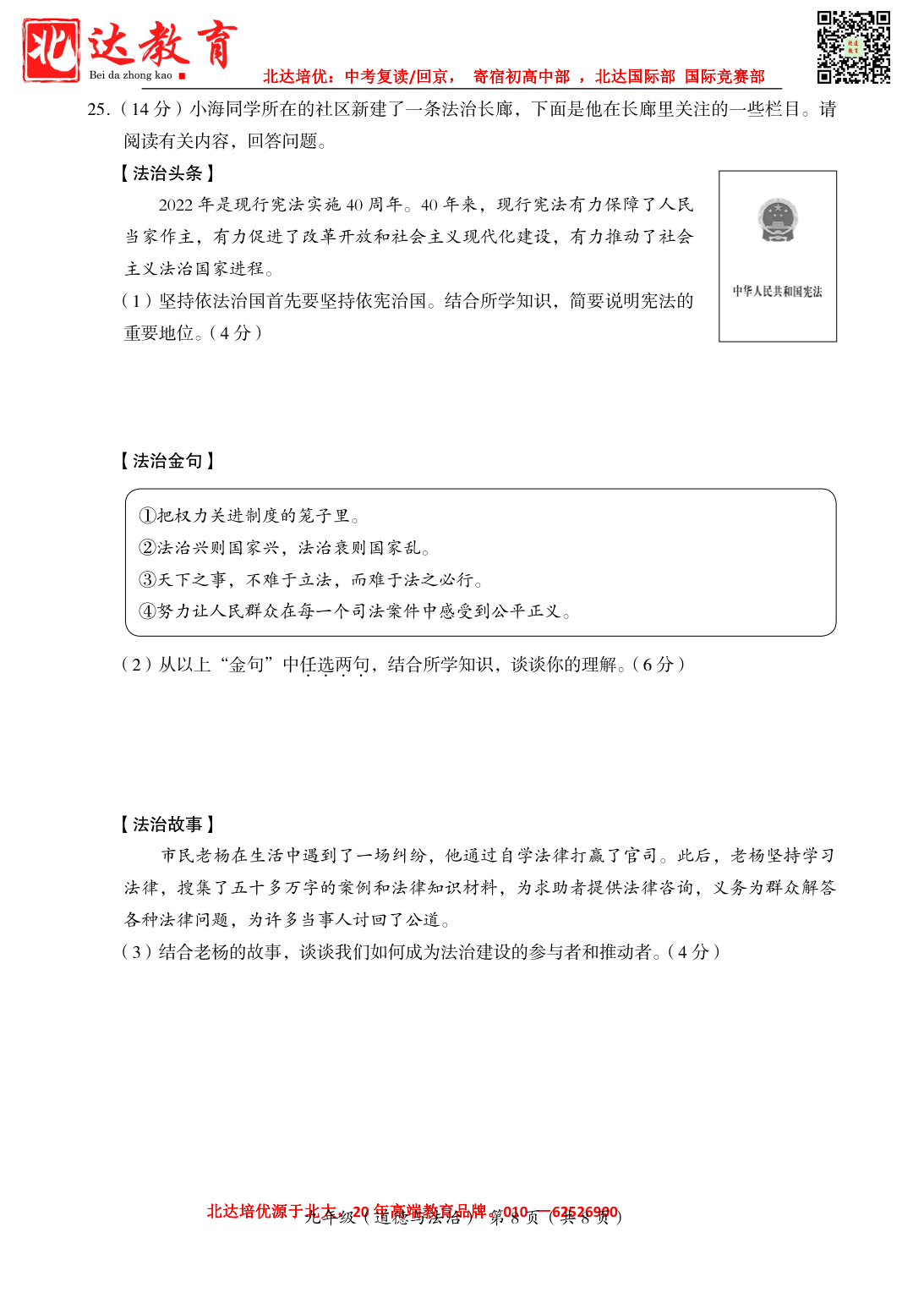 2022年北京海淀区初三(上)道法期中考试已开始,北达中考网第一时间为大家整理了试卷,分享给各位小伙伴。