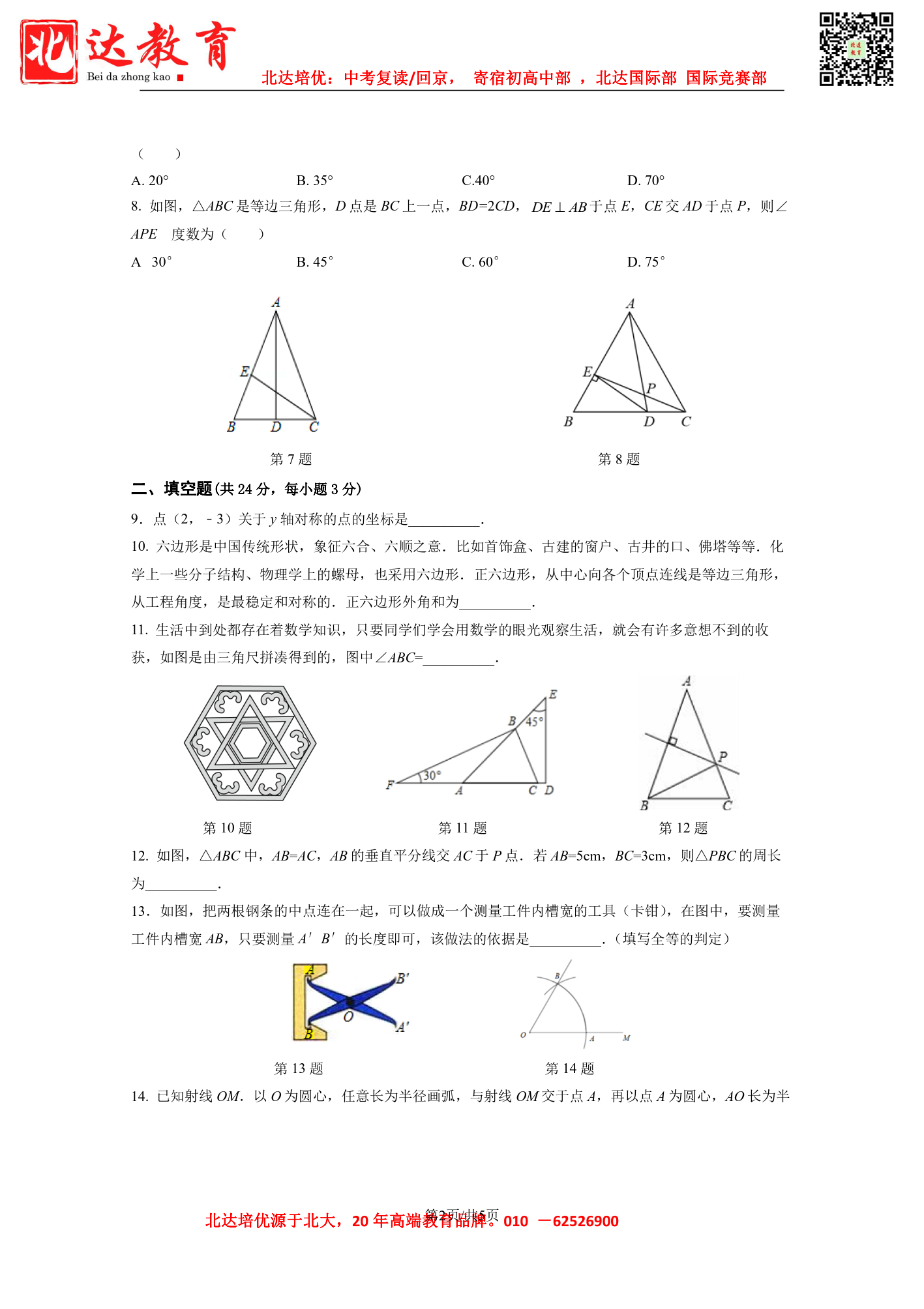2022-2023学年北京二十中初二(上)期中数学考试已结束,北达中考网第一时间为大家整理了试卷,分享给各位小伙伴。
