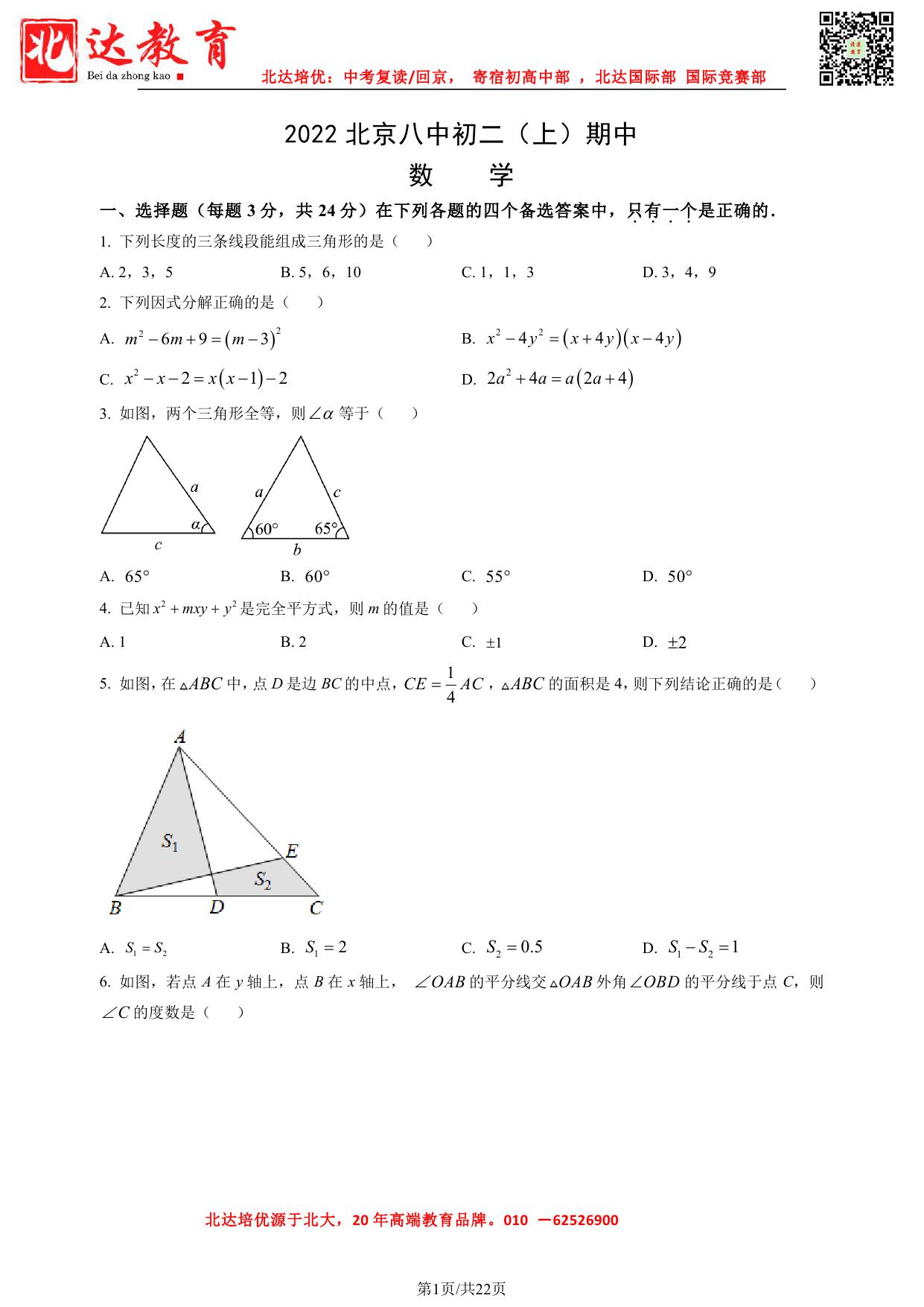 2022北京名校初二下试题及答案汇总