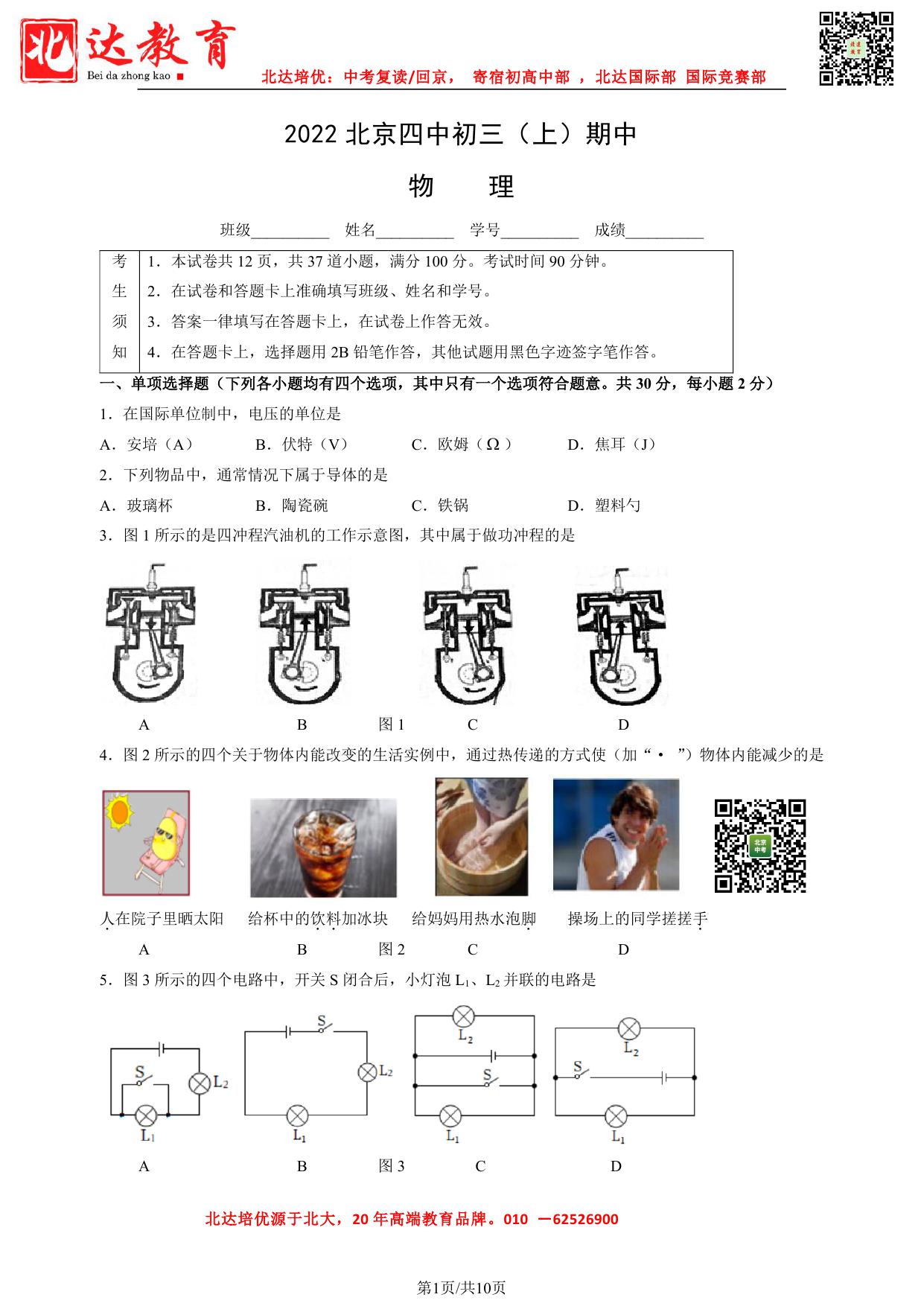 今天,北达中考网为大家整理了2022-2023学年北京四中初三(上)期中物理试卷,分享给大家。赶紧下载练习起来吧。