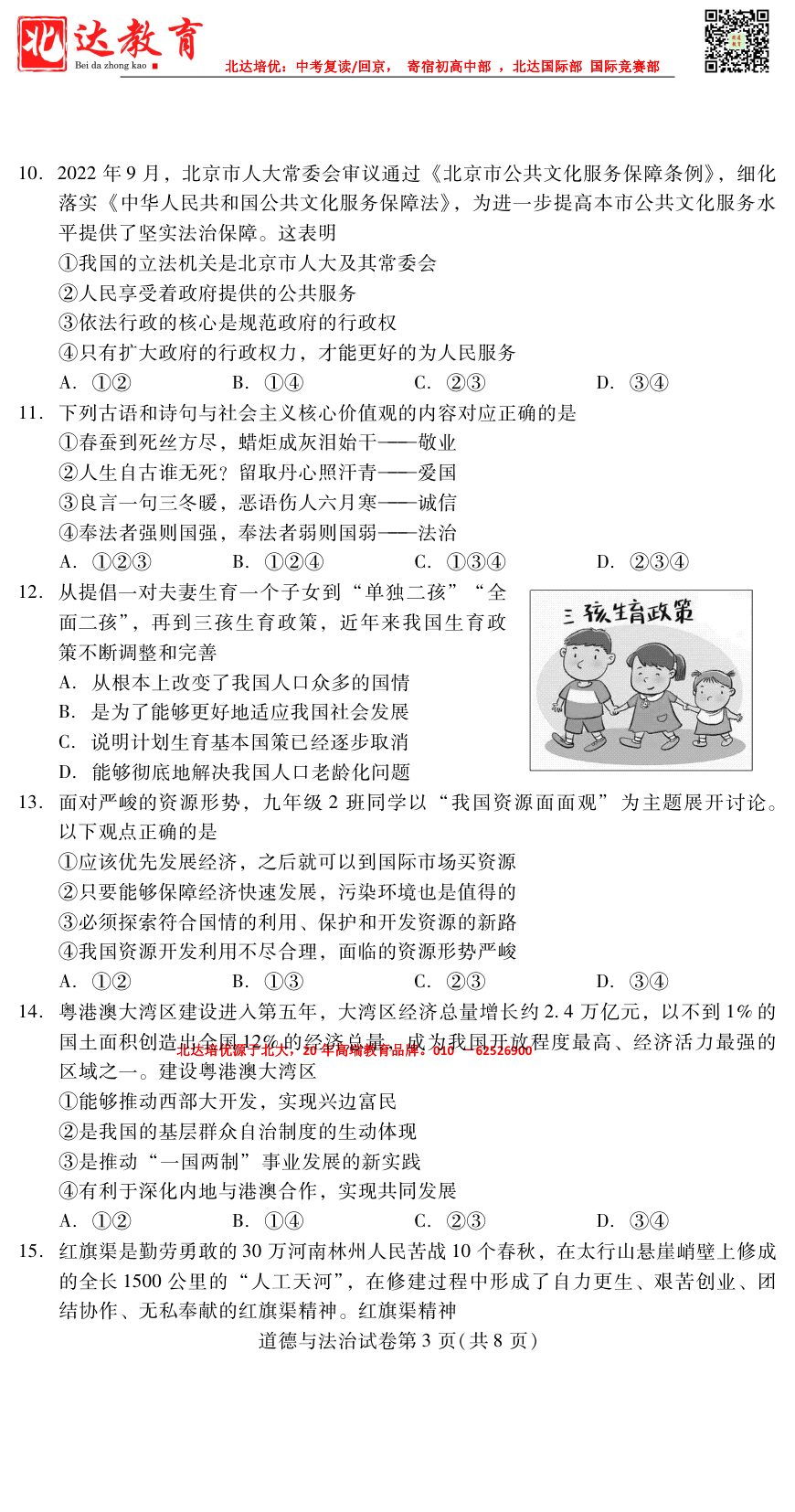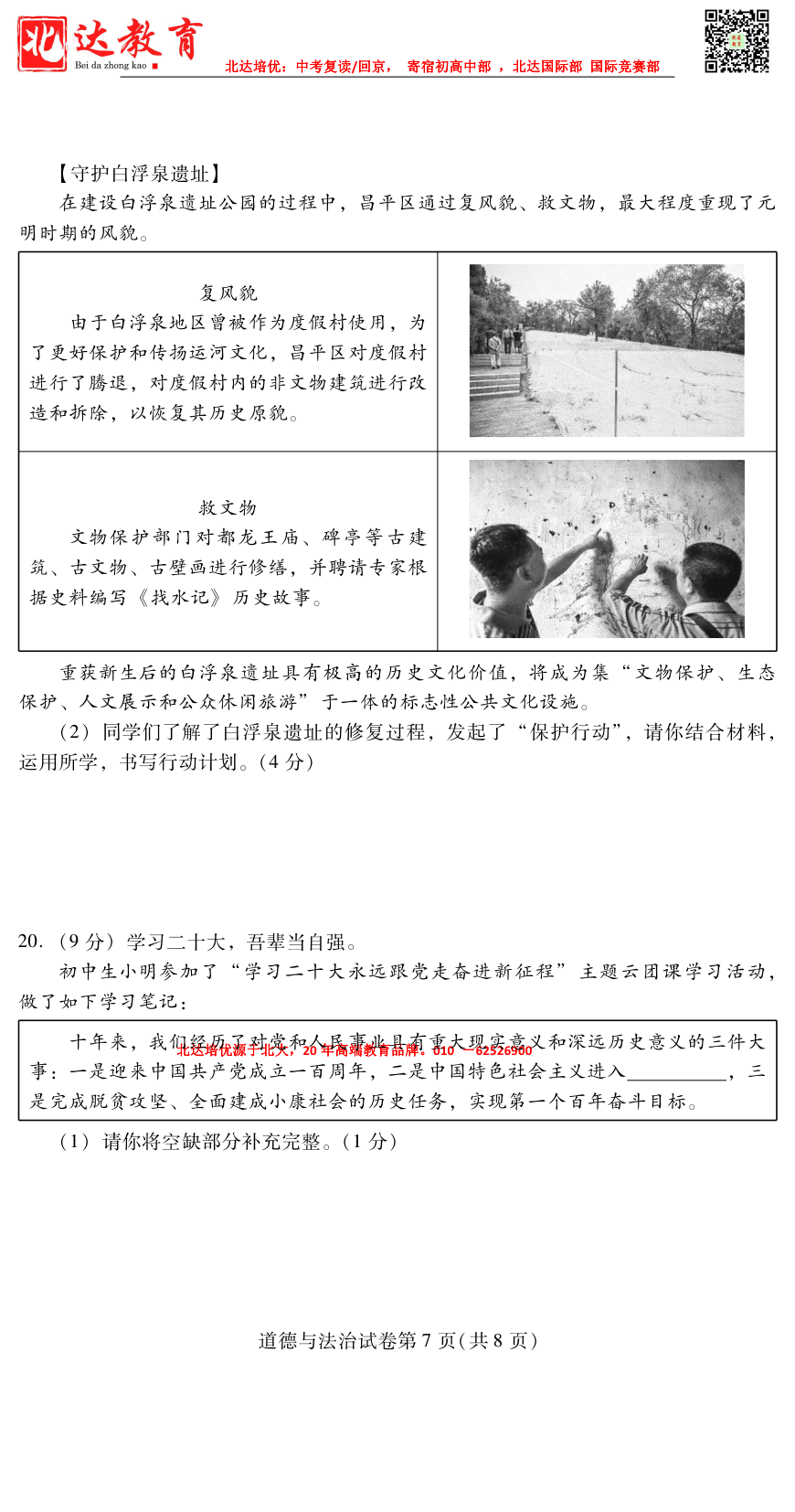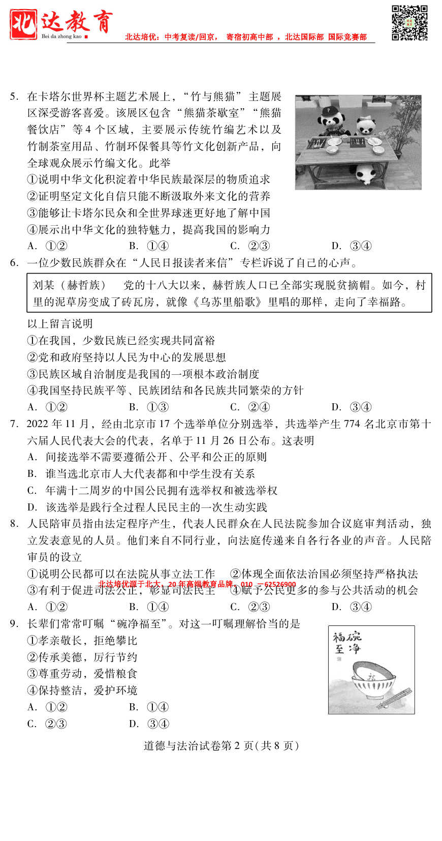 2022-2023学年北京昌平区初三上道德与法治期末考试已结束,北达中考网第一时间 为大家整理了相关试题,分享给大家。