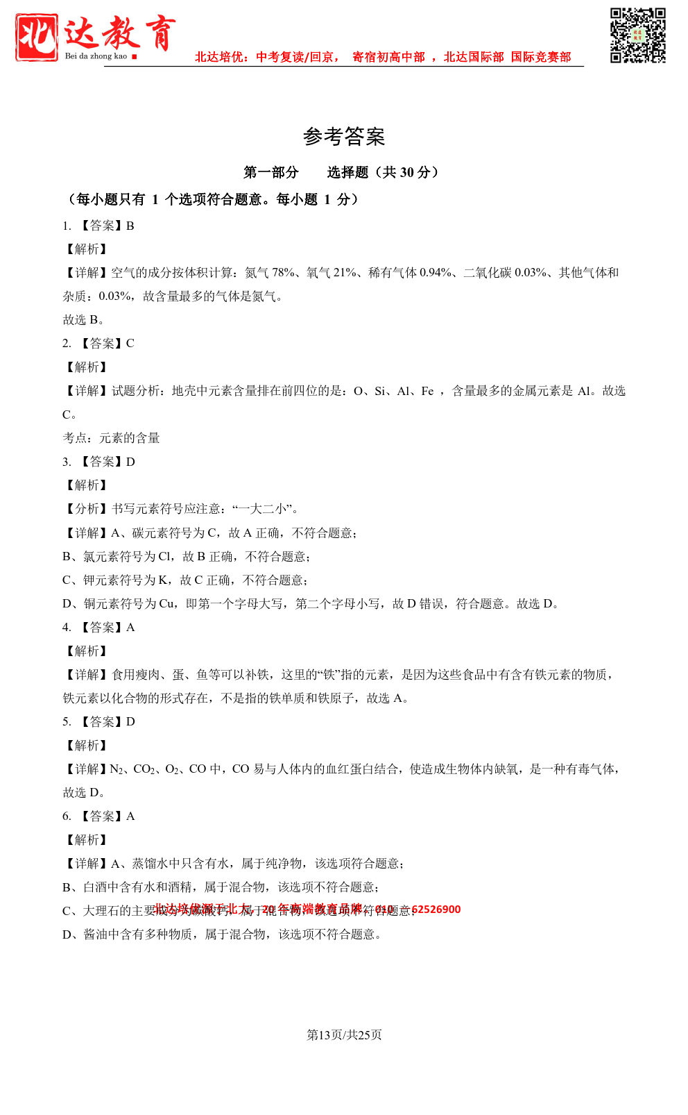 2022-2023学年北京门头沟区初三上化学考试已结束,北达中考网第一时间 为大家整理了相关试题及答案,分享给大家。