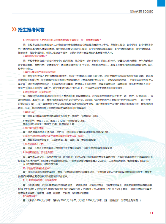 顺义区人力社保局高级技工学校发布2023招生简章!