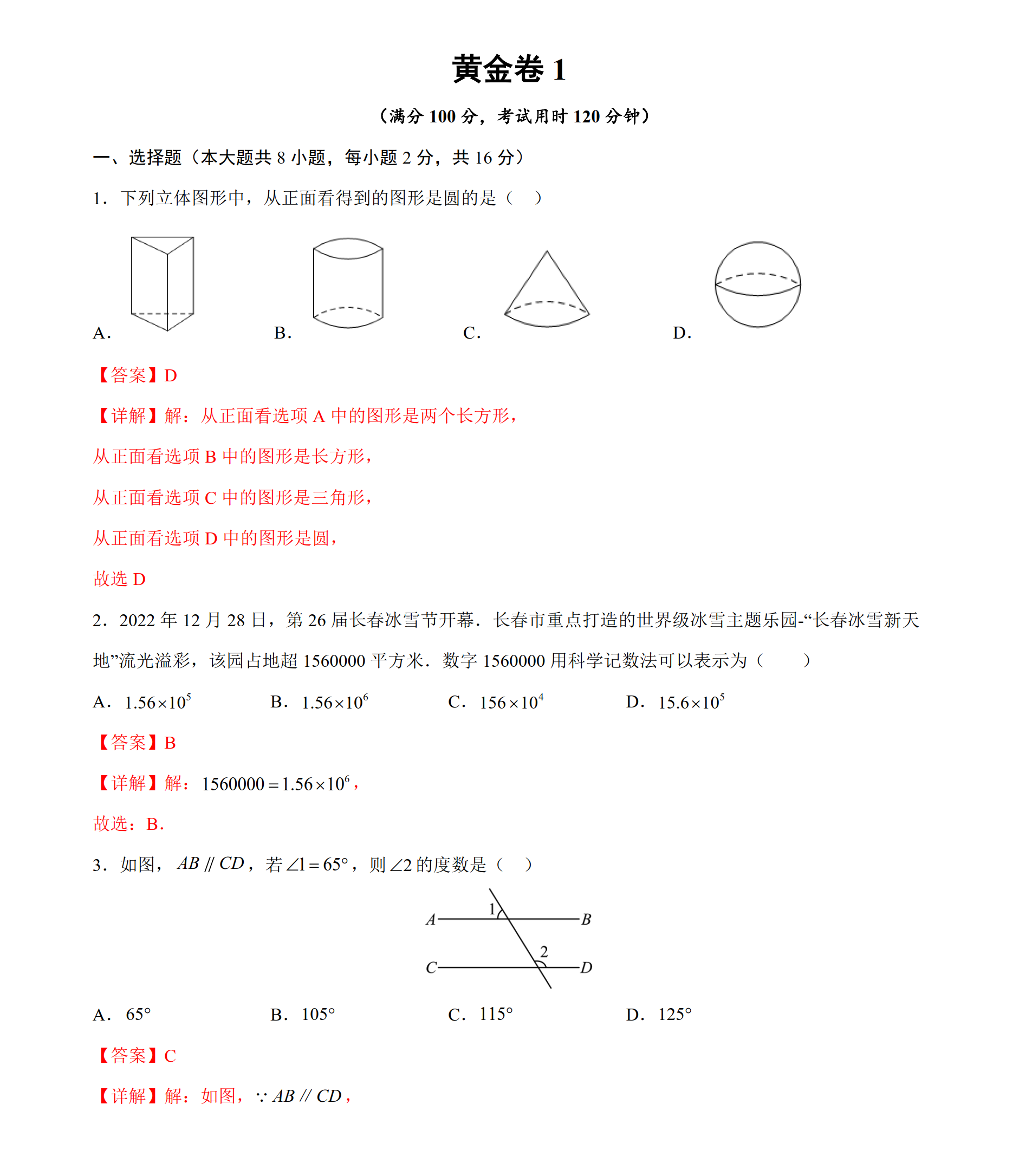 2022-2023学年北京各区初一上期末试卷&答案汇总