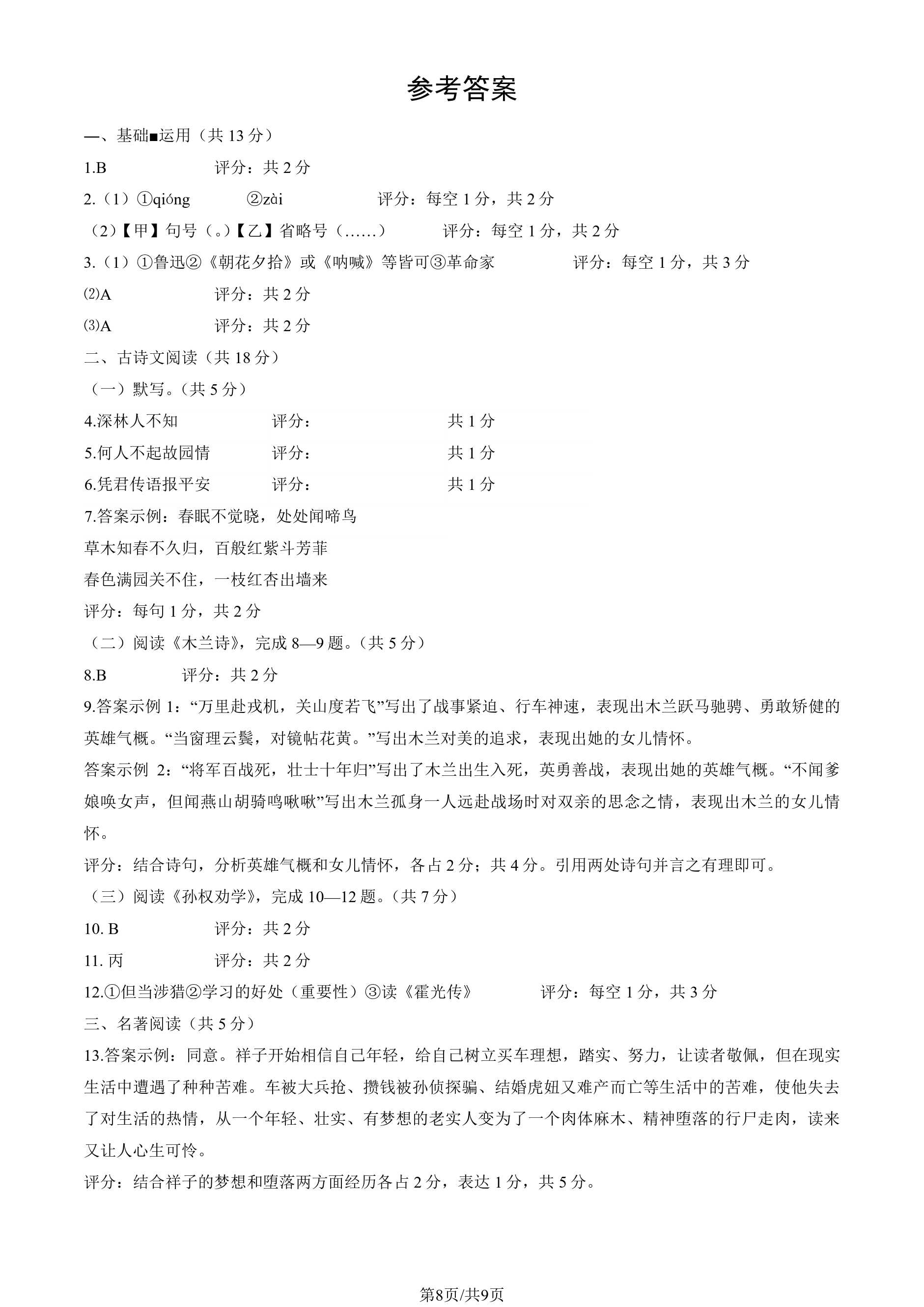新疆维吾尔自治区2022年中考各科试题及参考答案