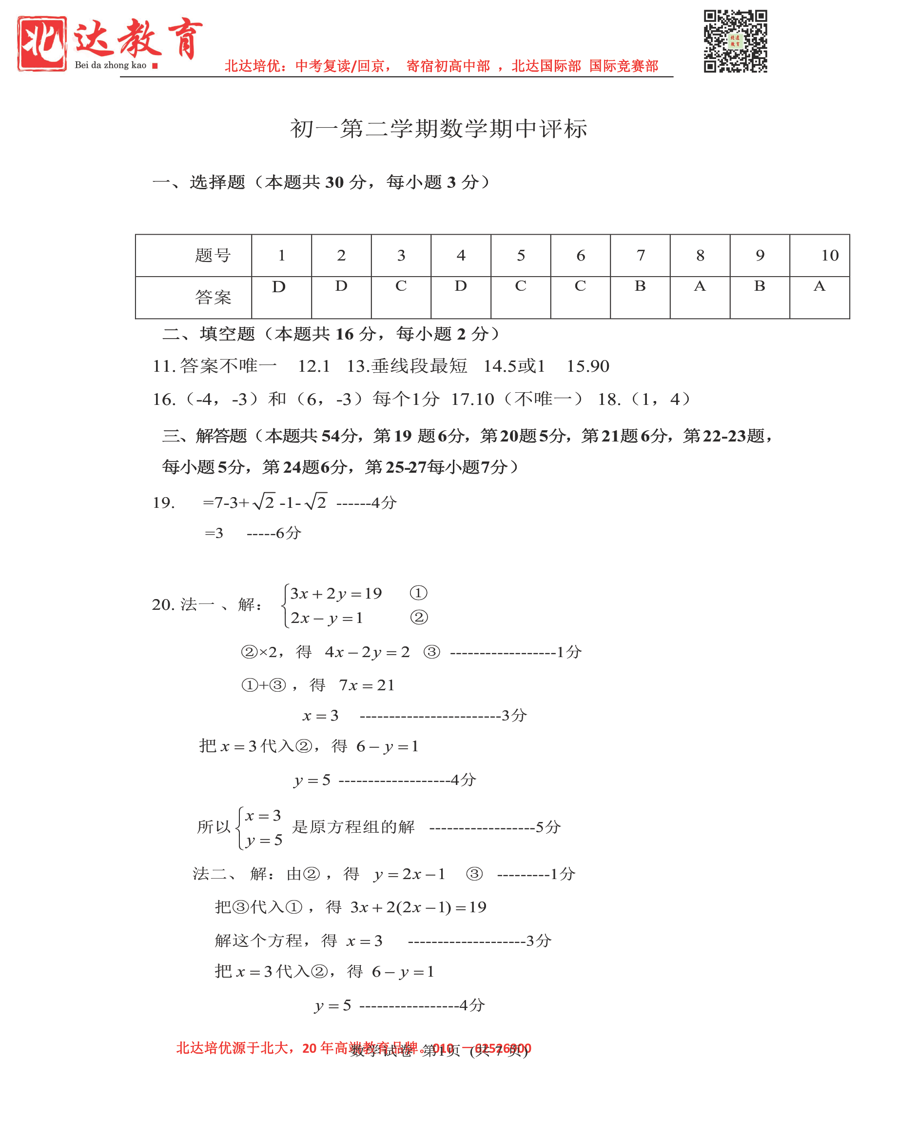 2023学年北京一六六学初一数学期中考考试已结束,北达中考网为大家整理了试题及答案,分享给大家。