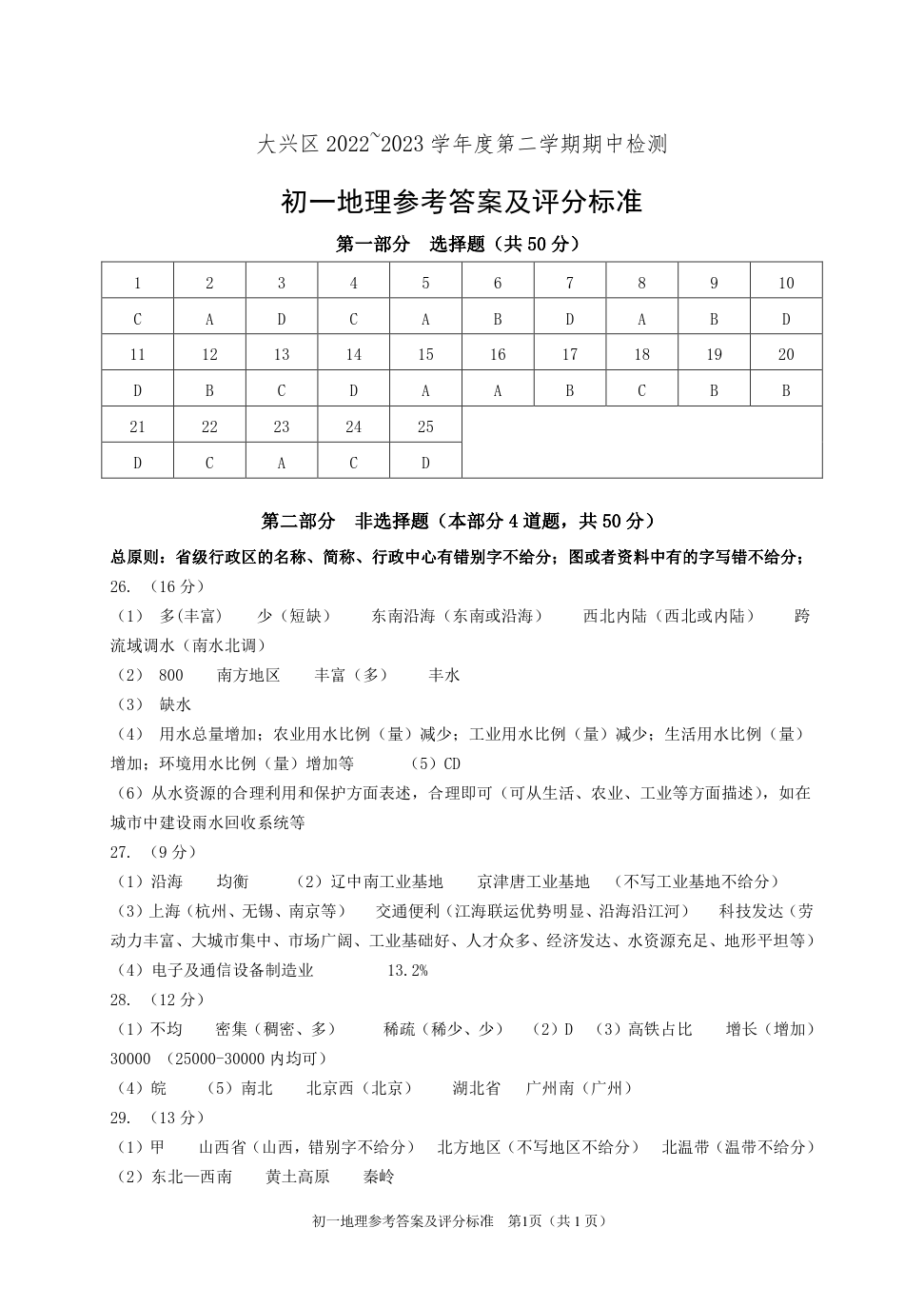 2023学年北京大兴区初一地理期中考考试已结束,北达中考网为大家整理了试题及答案,分享给大家。