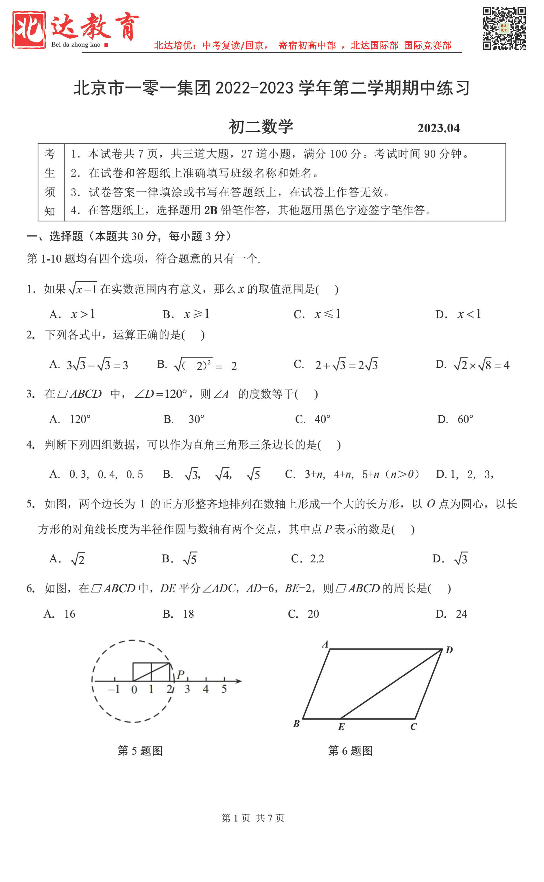 2023北京一零一中初二下数学期中考已结束,北达中考网为大家整理了 试题及答案,分享给大家。