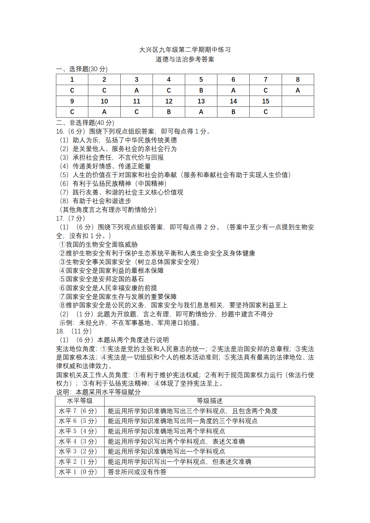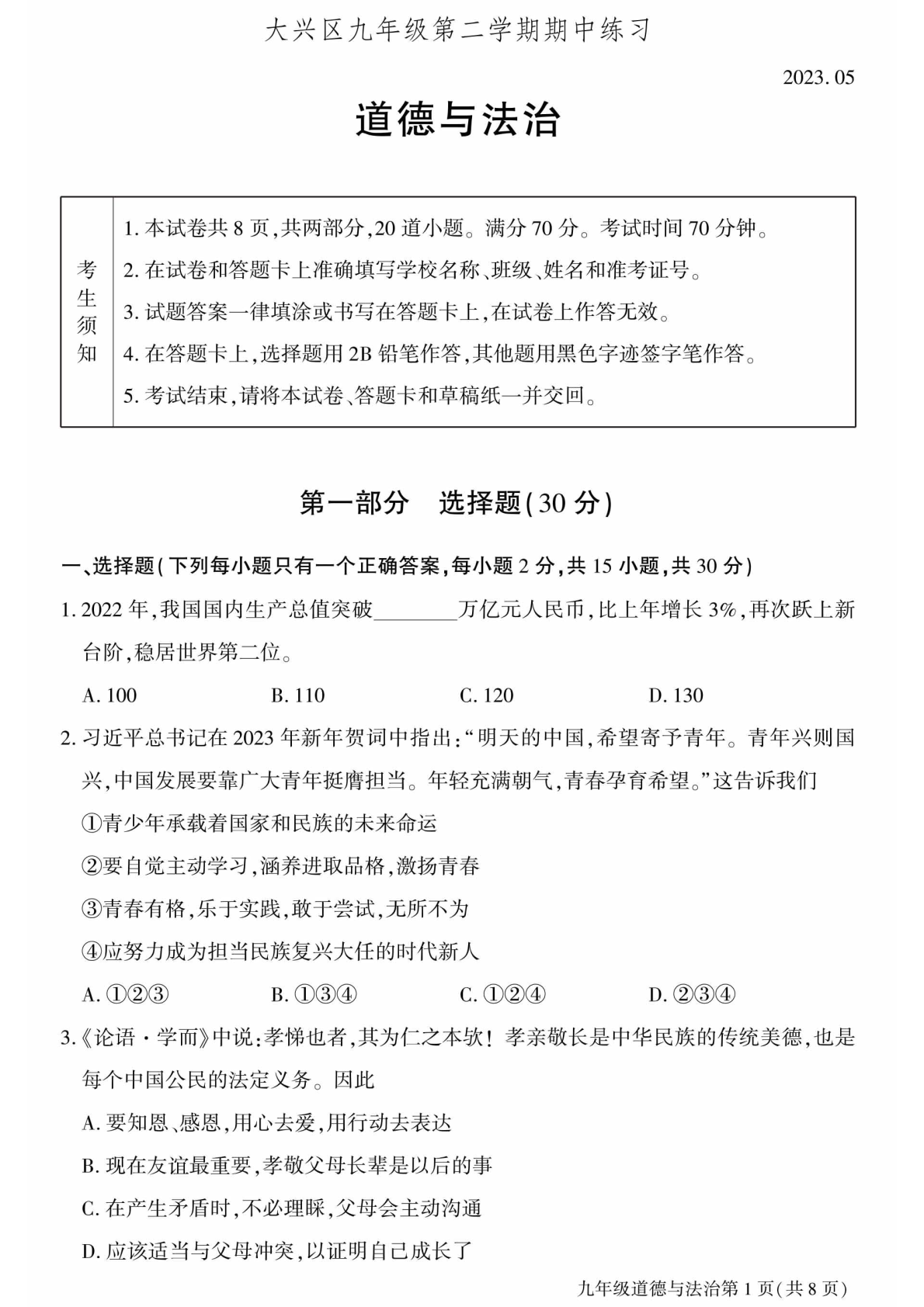 北达中考网为大家整理了2023北京大兴区初三一模道法试题及答案,分享给大家。