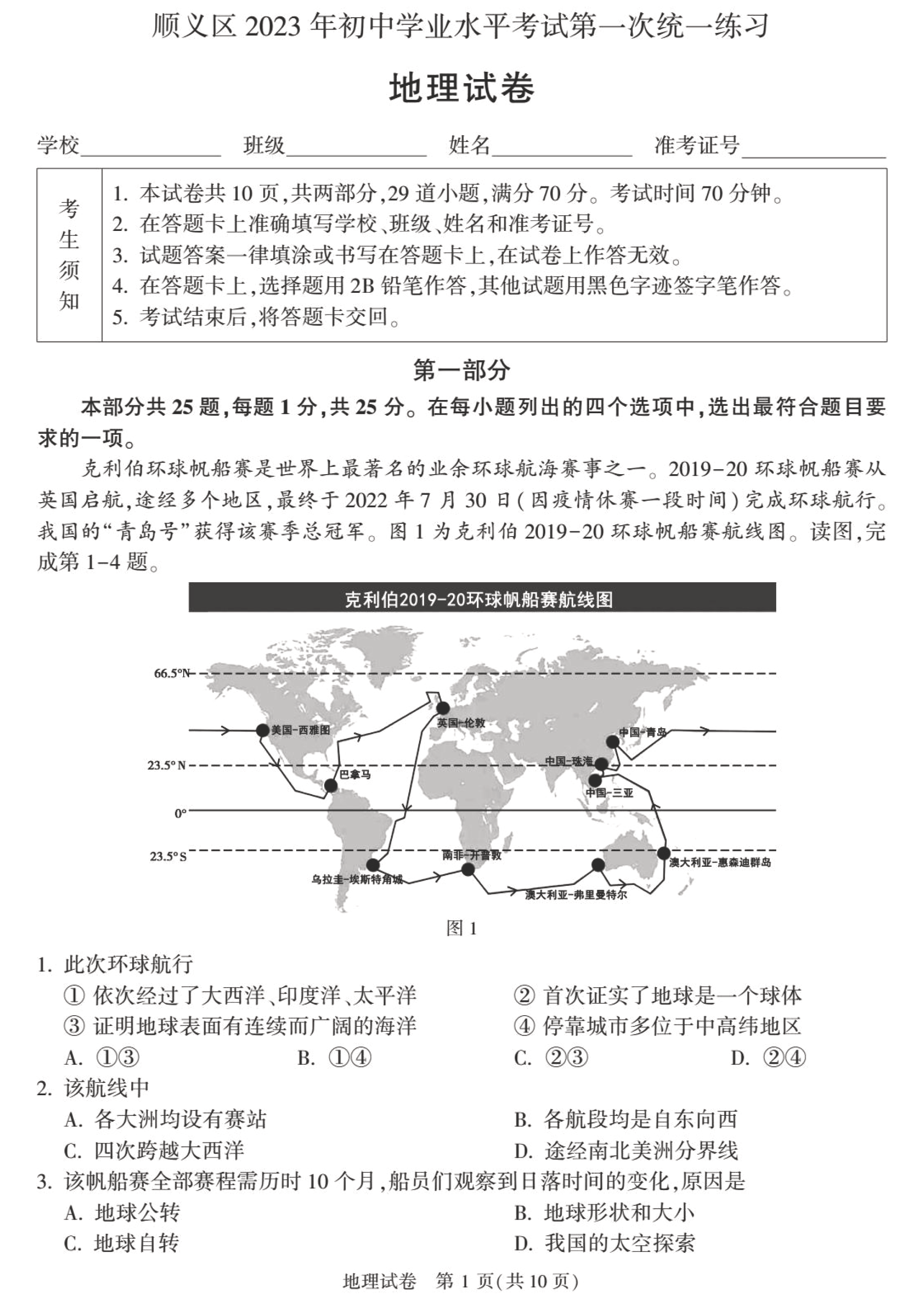 2023北京顺义区初二一模地理考已结束,北达中考网为大家整理了 试题及答案,分享给大家。
