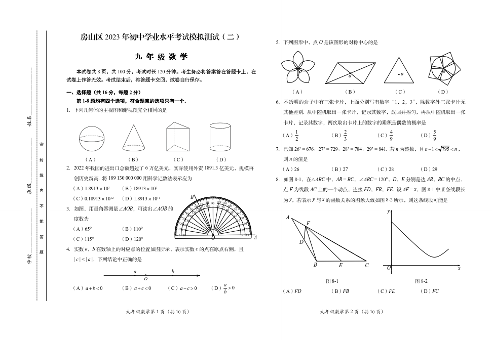2023北京房山区初三二模正在进行,北达中考网为大家整理了数学试题及答案,分享给大家。