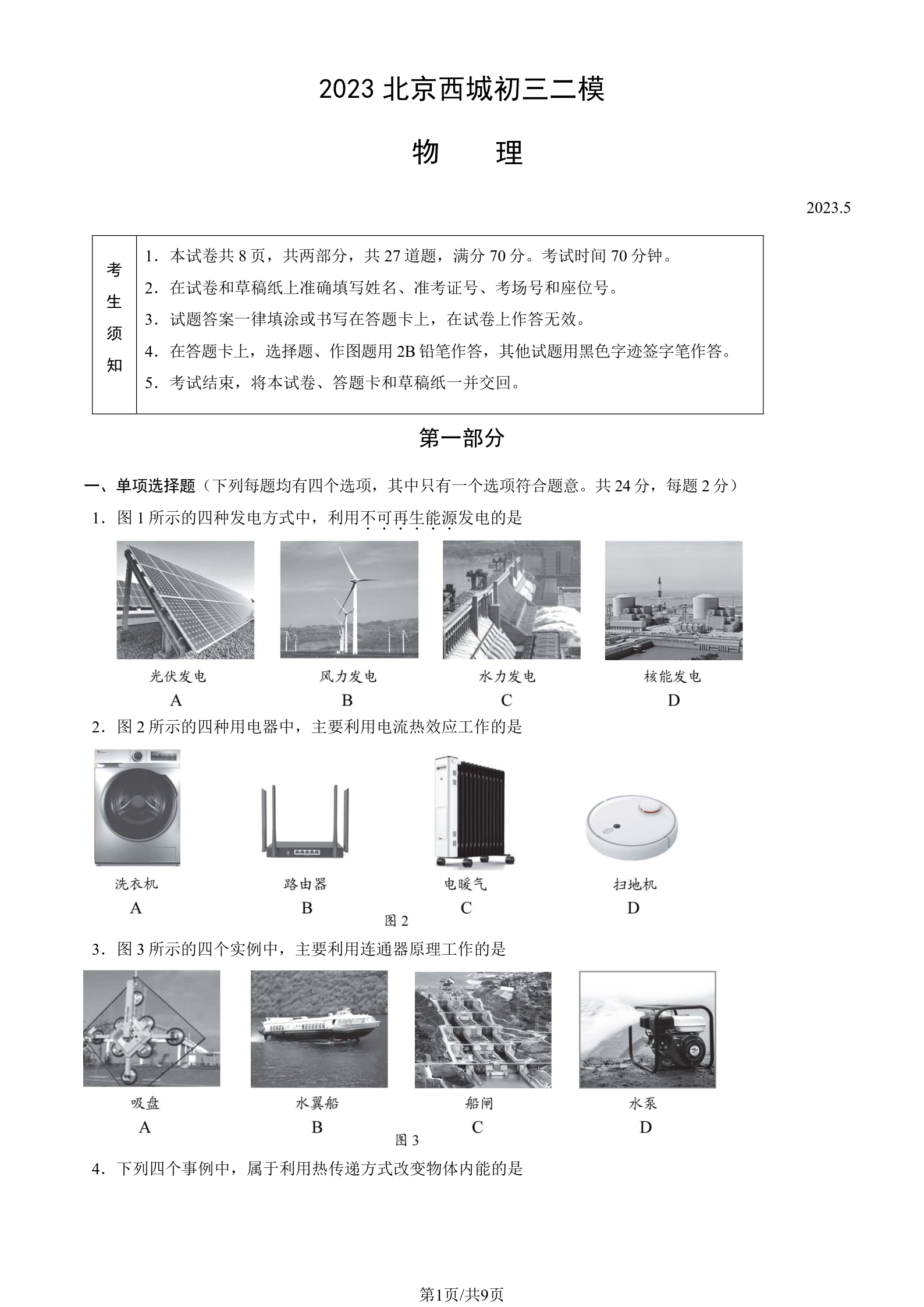 2023北京西城区初三二模正在进行,北达中考网为大家整理了物理试题及答案,分享给大家。